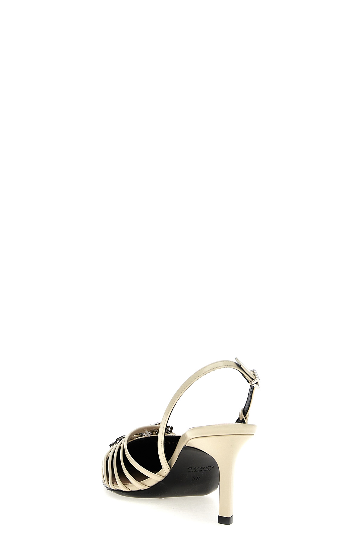 Leather pumps with toe straps, adjustable ankle strap, heel.