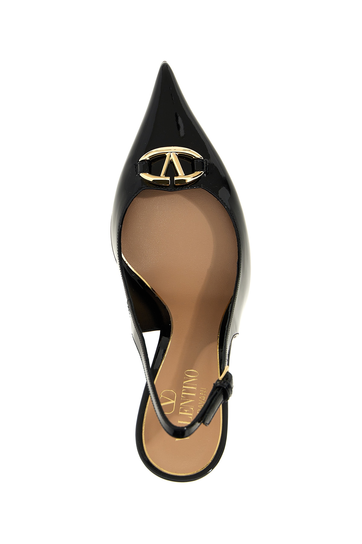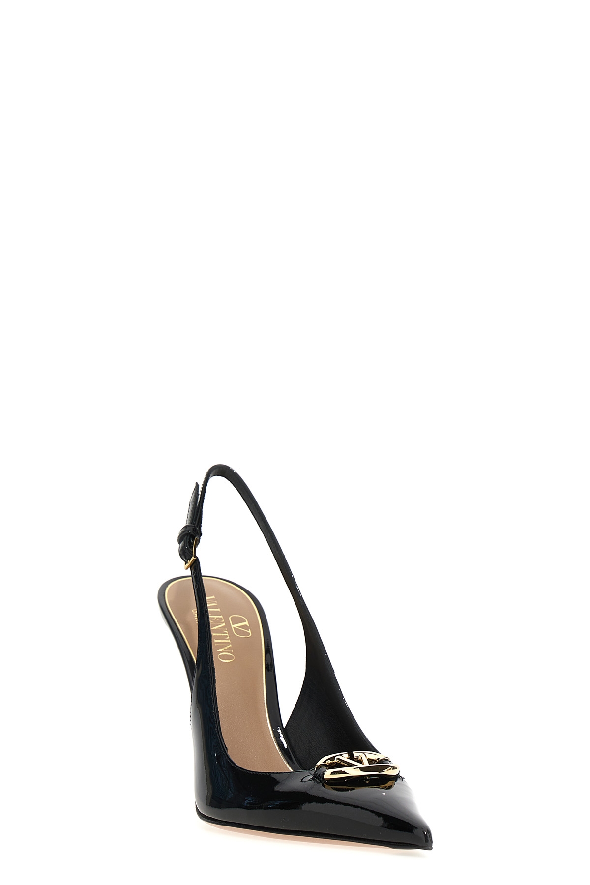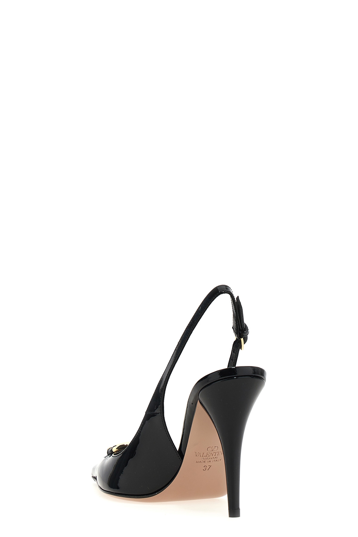 Patent leather slingbacks with metal front 'VLogo The Bold Edition' detail, heel, adjustable strap.