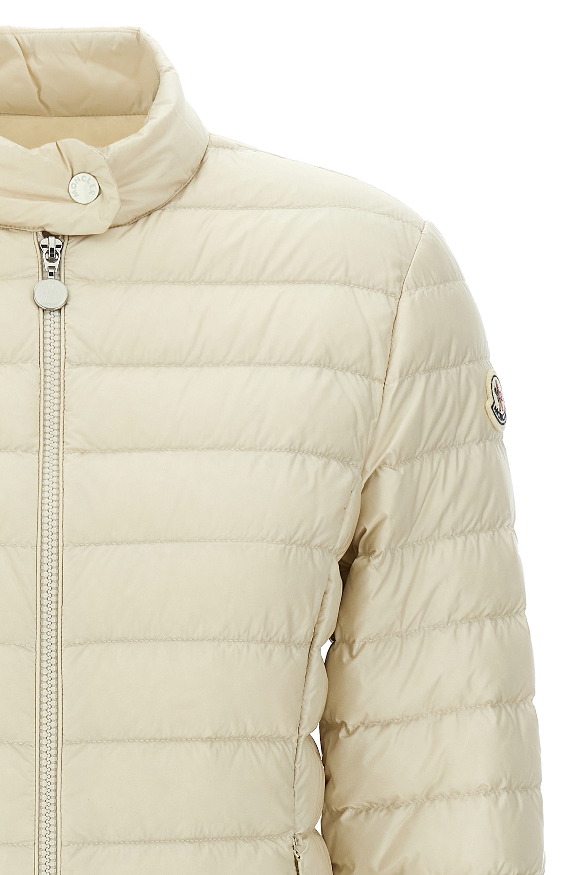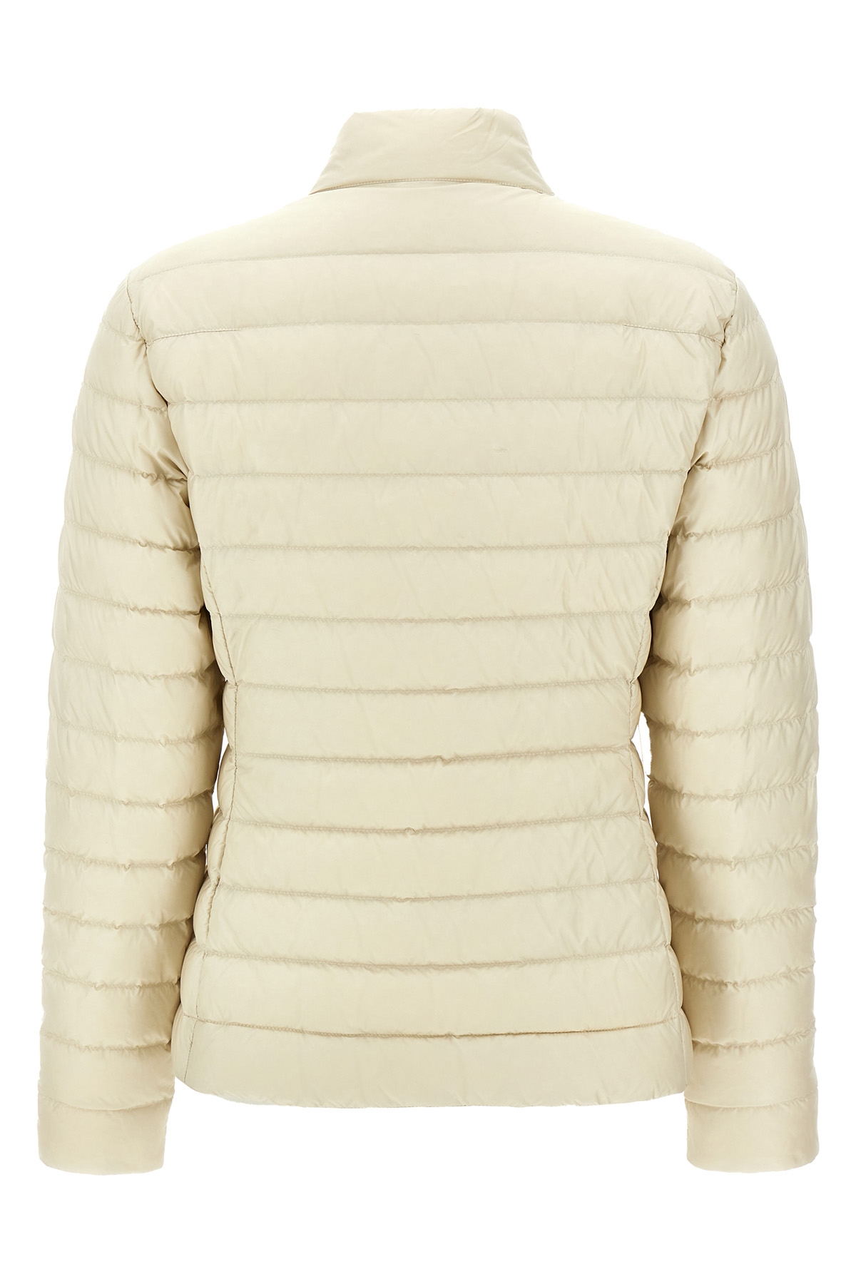 'Igelle' down jacket in quilted saison longue with down padding, zip closure, standing collar with snap button closure, long sleeves with felt logo patch, pockets.