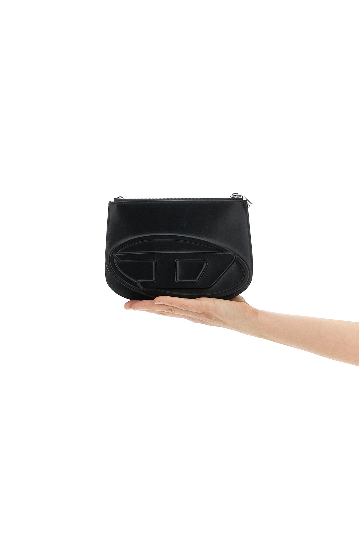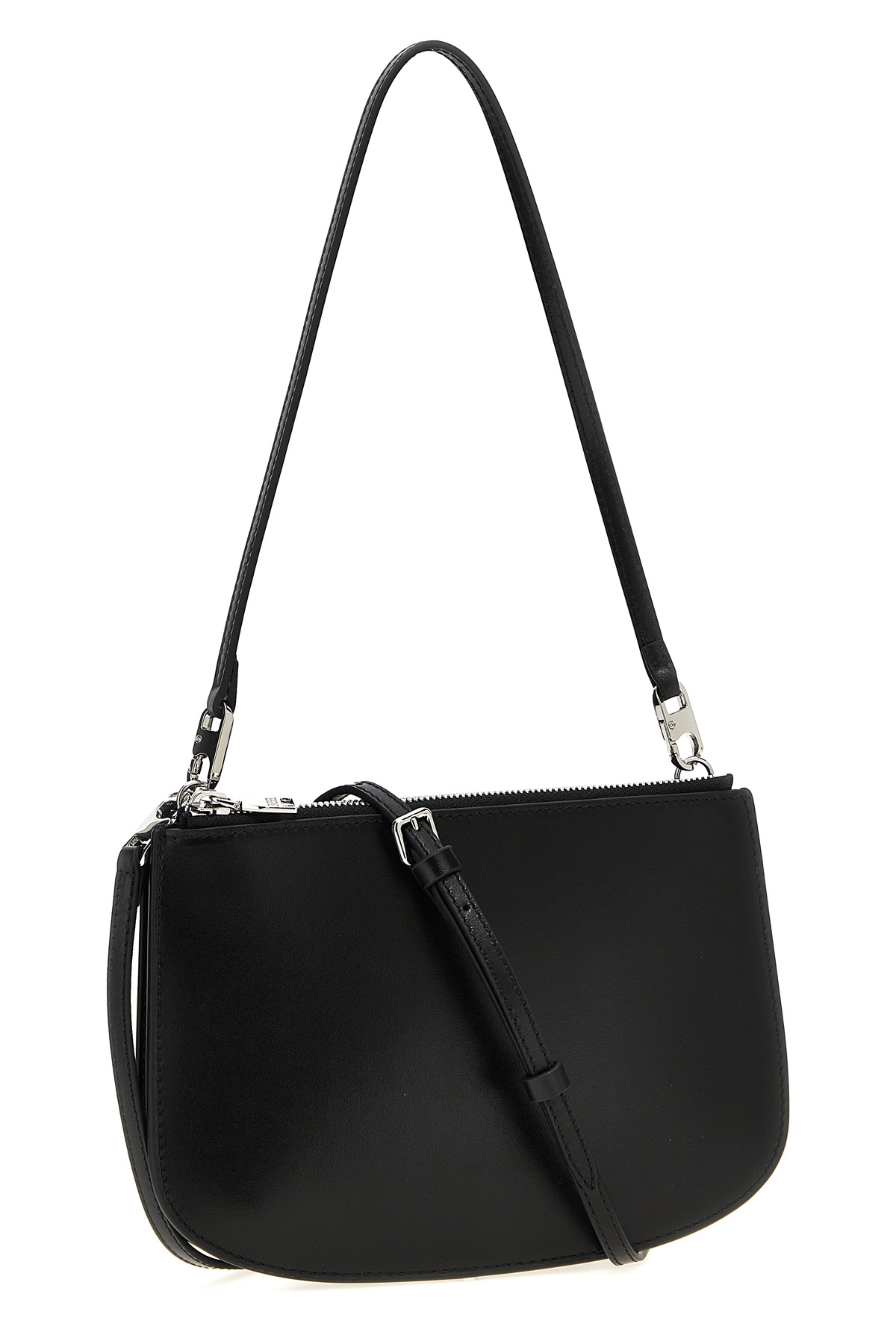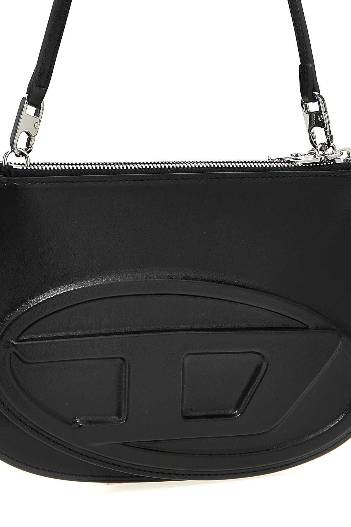 '1DR Twin' shoulder bag in fine Italian leather, front embossed logo, zip closure, removable handle, adjustable and removable shoulder strap.