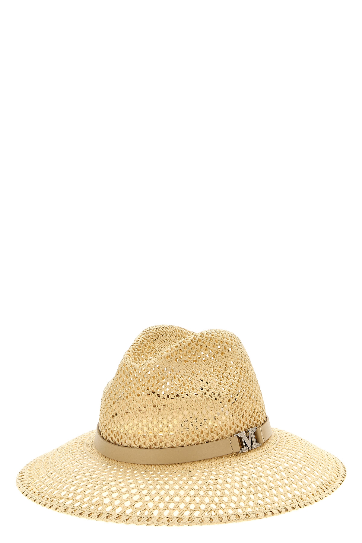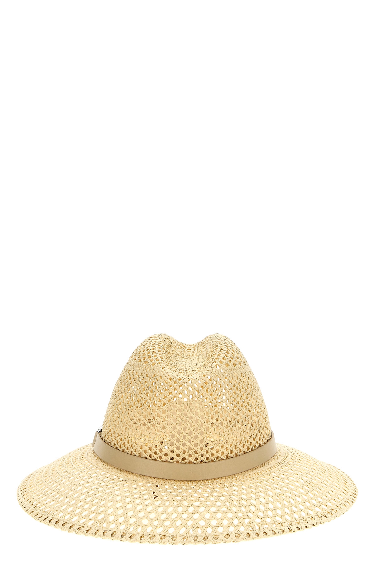 'Marocco' hat in textile paper worked with all-over openwork pattern, wide-brimmed model with tone-on-tone leather band and metal M Monogram detail.