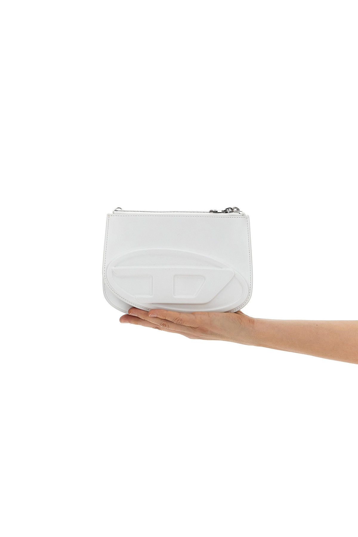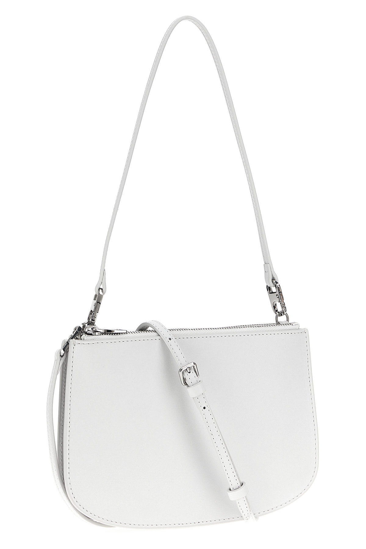 '1DR Twin' shoulder bag in fine Italian leather, front embossed logo, zip closure, removable handle, adjustable and removable shoulder strap.