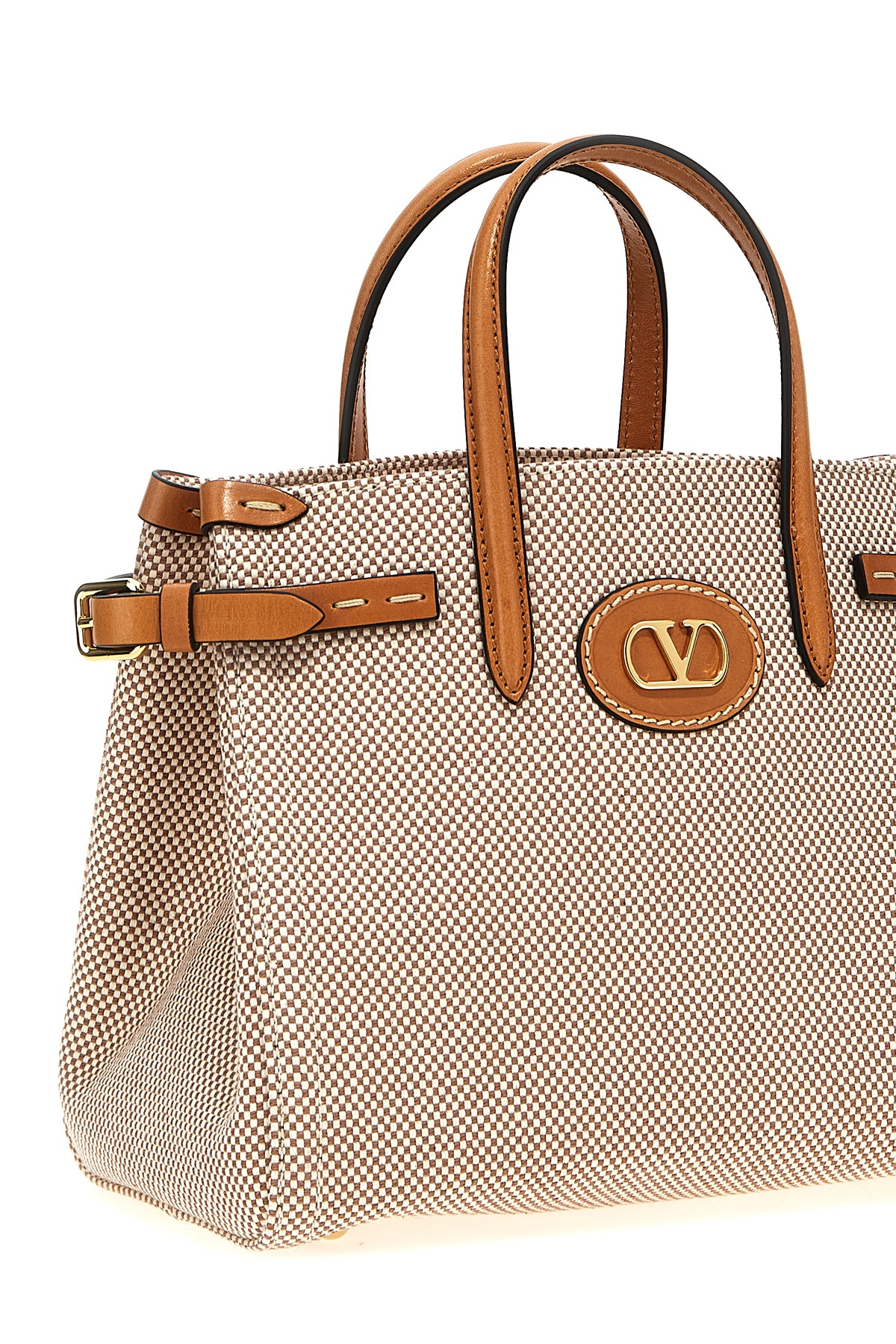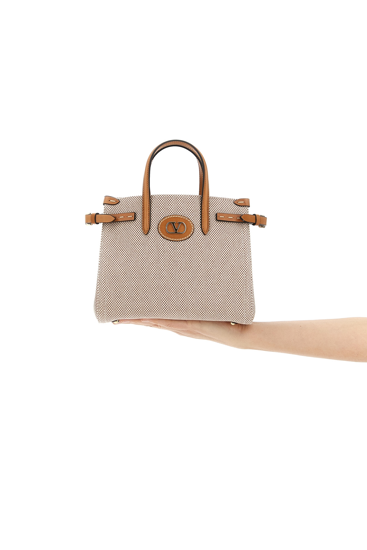 Small 'Antibes' canvas handbag with leather details, leather patch with VLogo Signature metal on the front, double fixed handle, metal details, adjustable side straps, magnetic closure, adjustable and removable shoulder strap.
