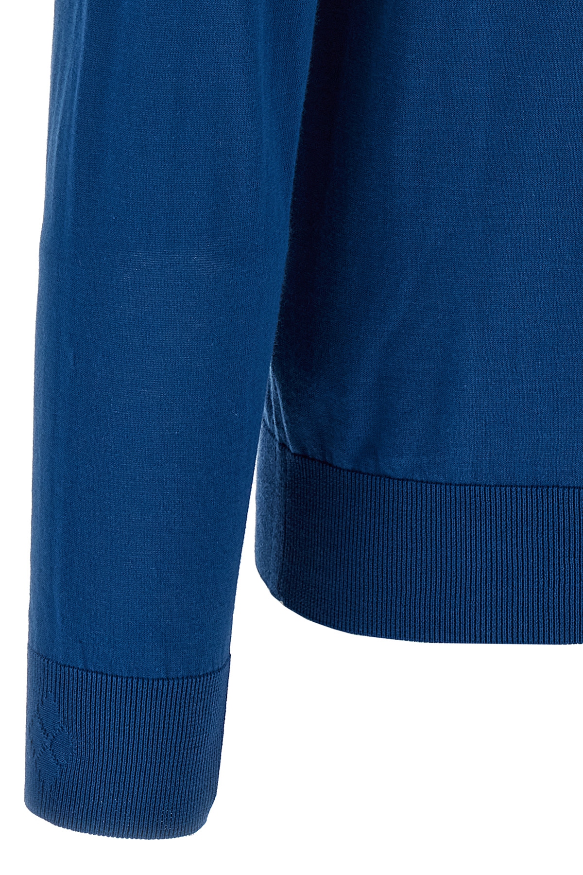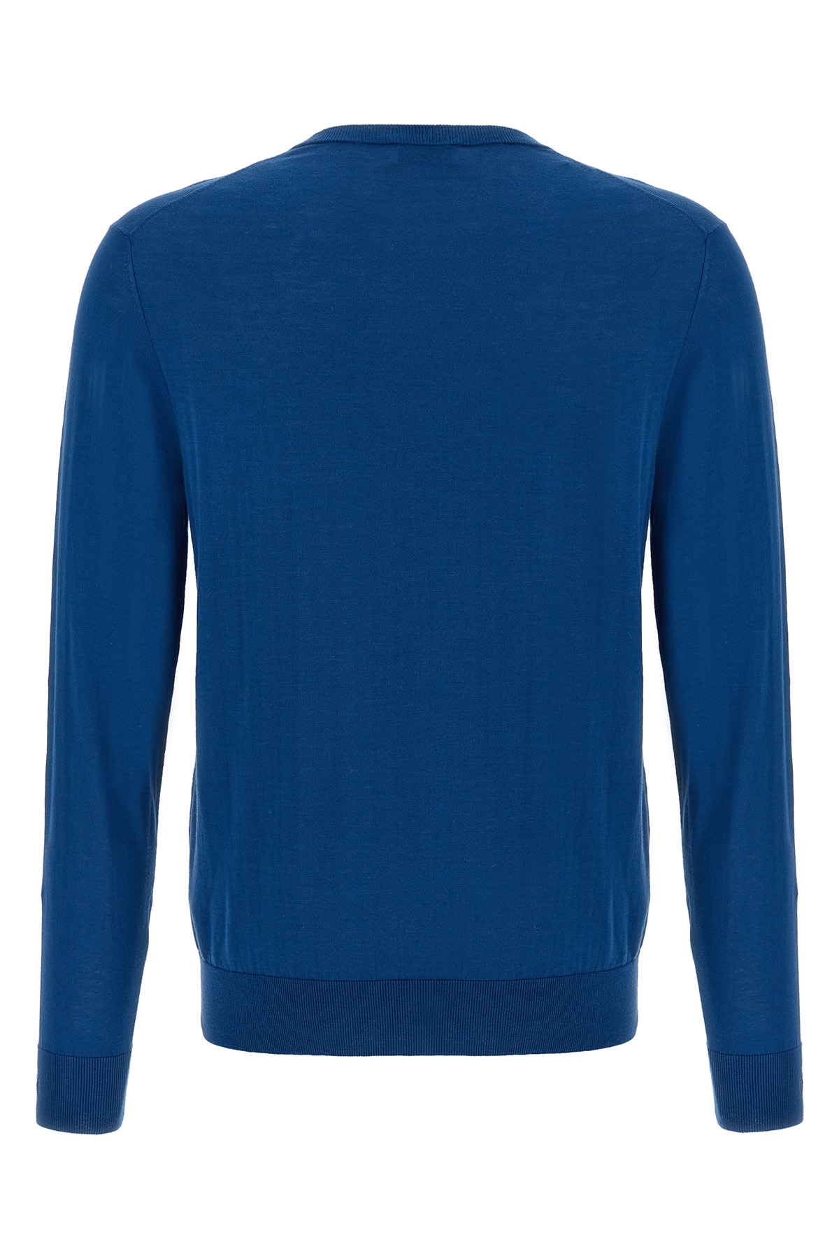'R Neck' light cotton sweater with crew neck, long cuffed sleeves.