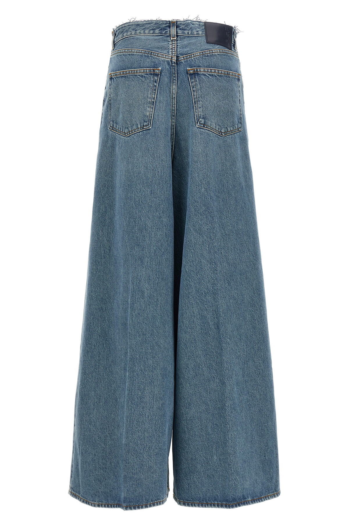 'Big Bethany' used-effect delave cotton denim jeans, relaxed waist with low crotch and wide leg, zip and button closure, five pockets, back logo tag.