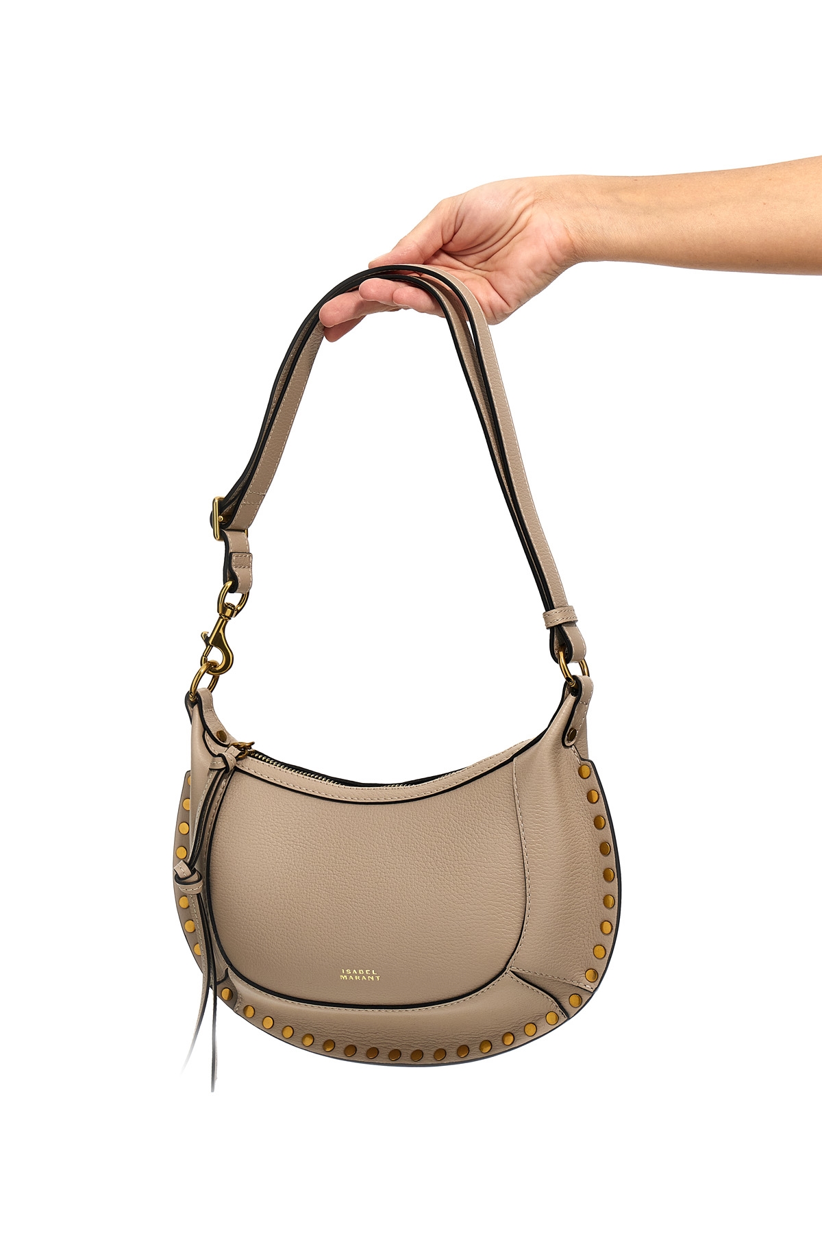 'Oskan Moon' leather shoulder bag with stud applications, zip closure, adjustable and removable shoulder strap.
