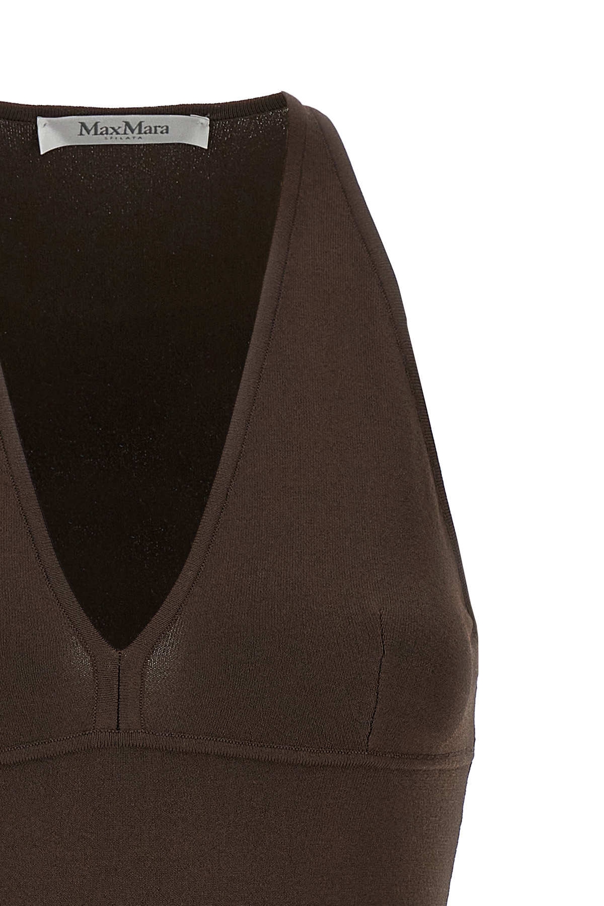 'Armida1234' top in stretch viscose crepe yarn worked in fabric stitch, V-neck.