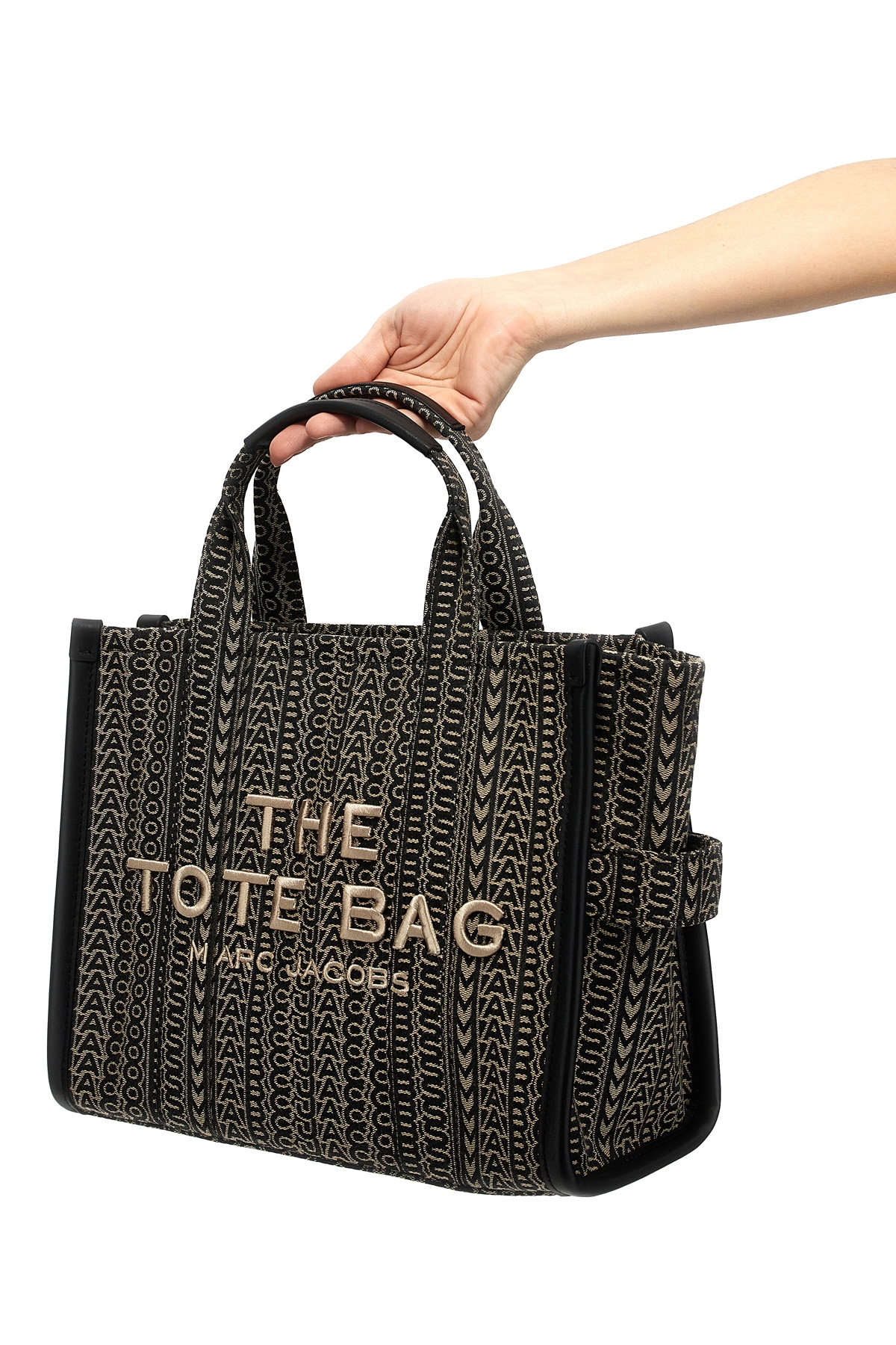 The Monogram Jacquard Medium Tote' woven jacquard shopping bag with leather details, front embossed logo embroidery, double fixed handle, zip closure, adjustable and removable shoulder strap.