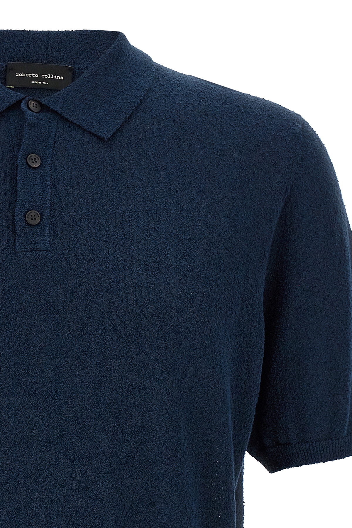 Polo shirt in cotton blend knit with terry effect, collar and buttons, short sleeves with cuffs.