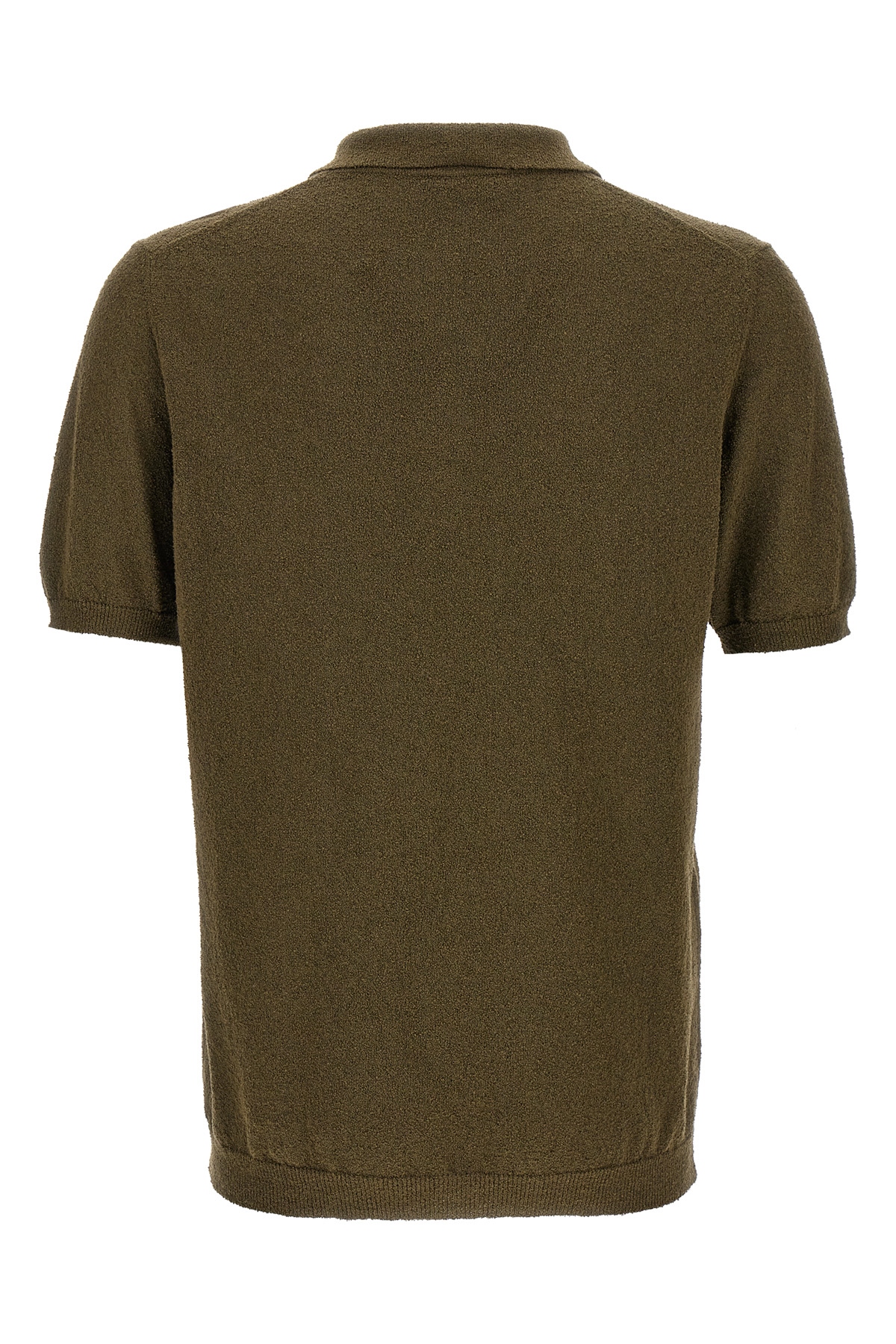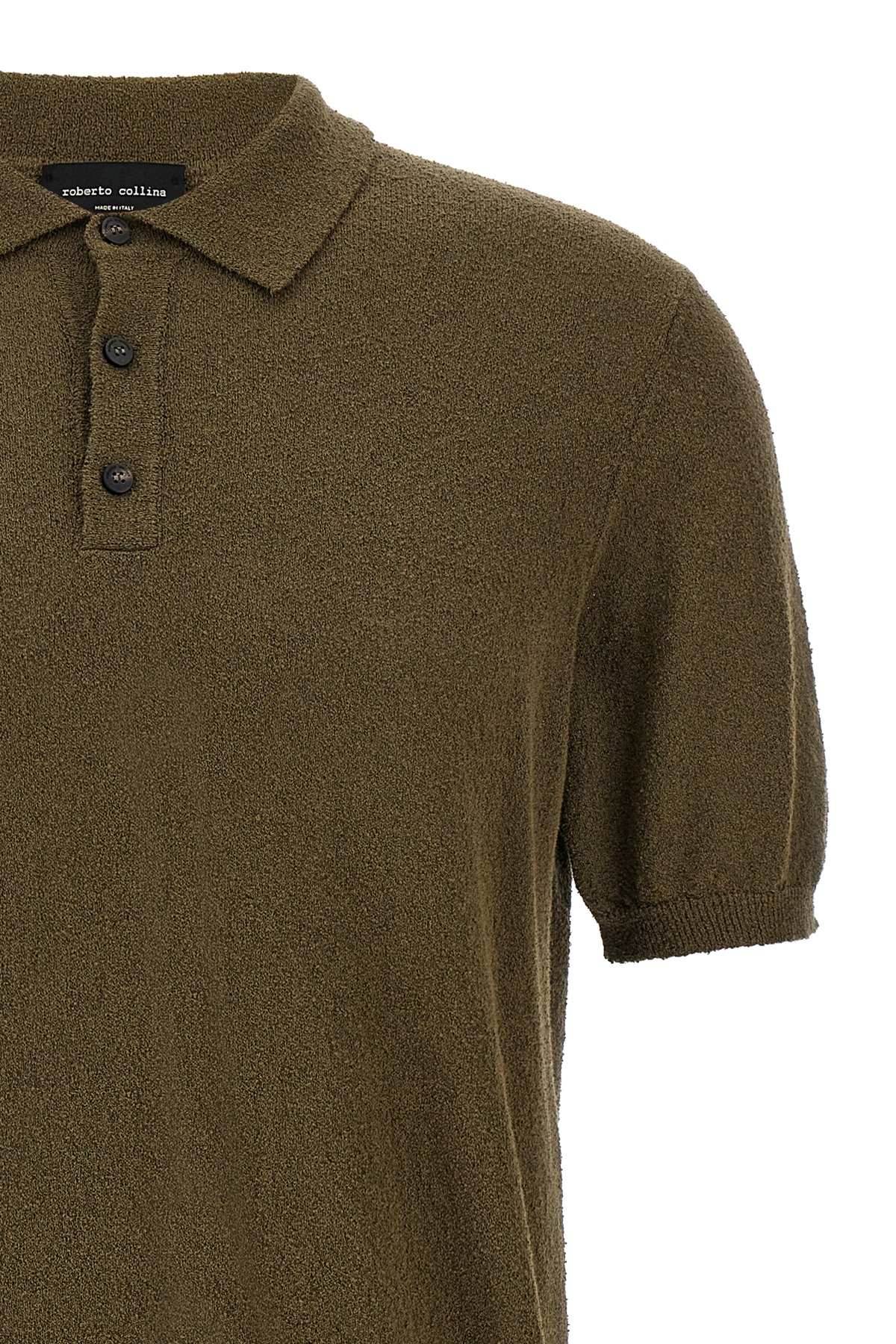 Polo shirt in cotton blend knit with terry effect, collar and buttons, short sleeves with cuffs.