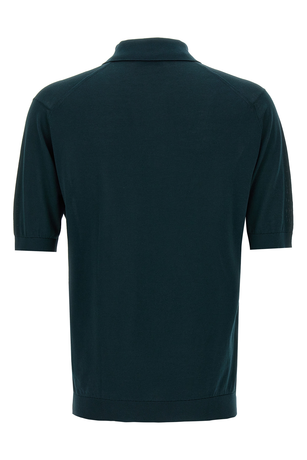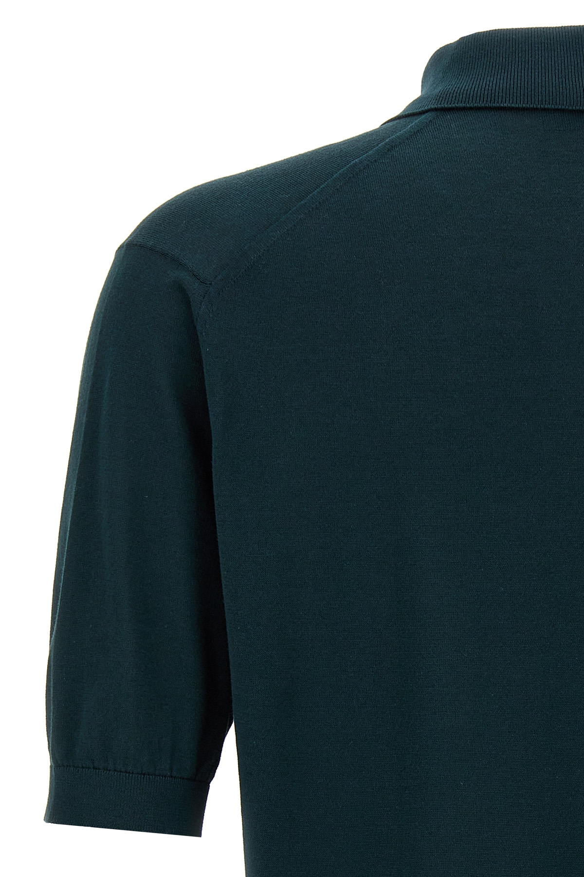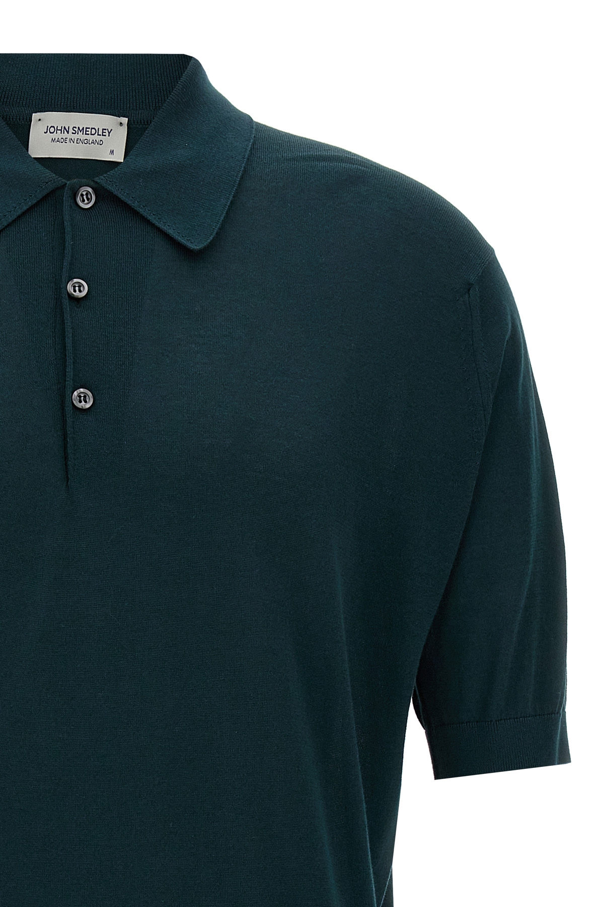 John Smedley's Sea Island cotton 'Isis' polo shirt with collar and buttons, short sleeves with cuffs.
