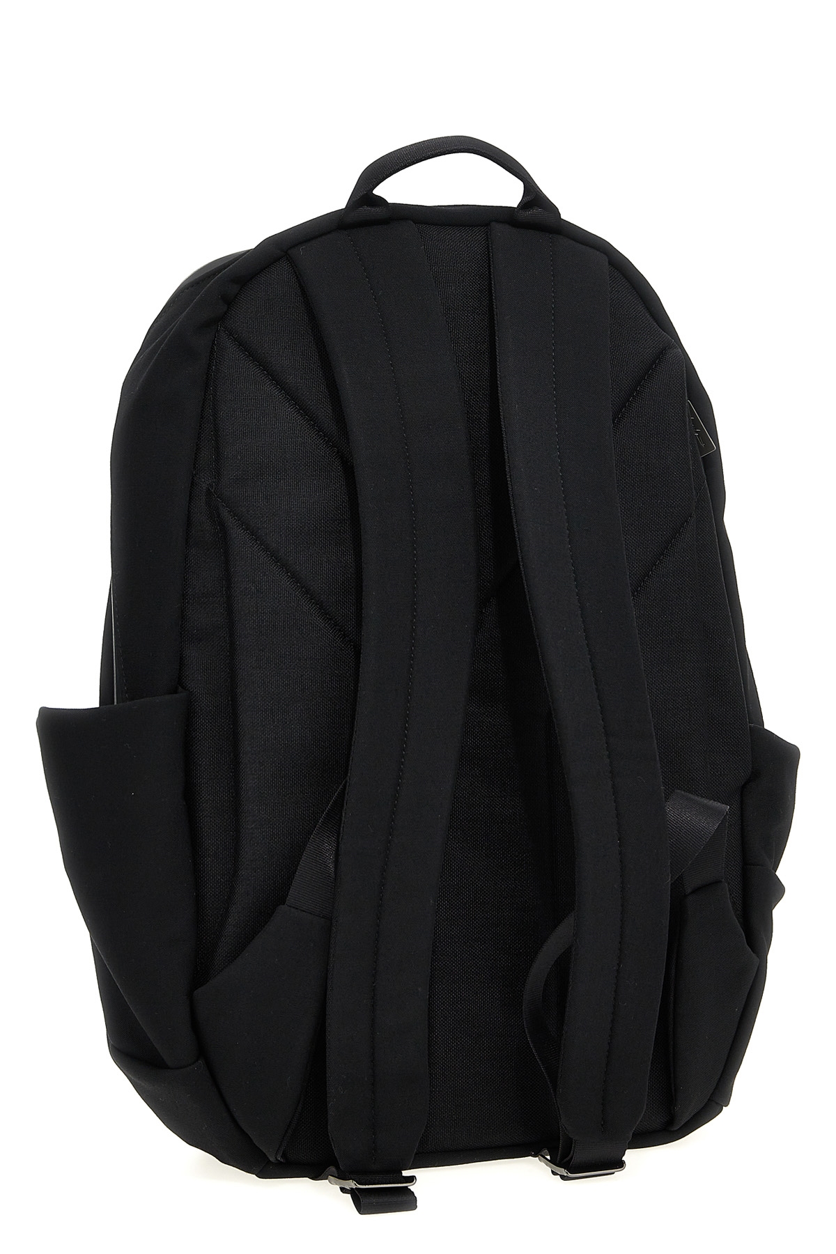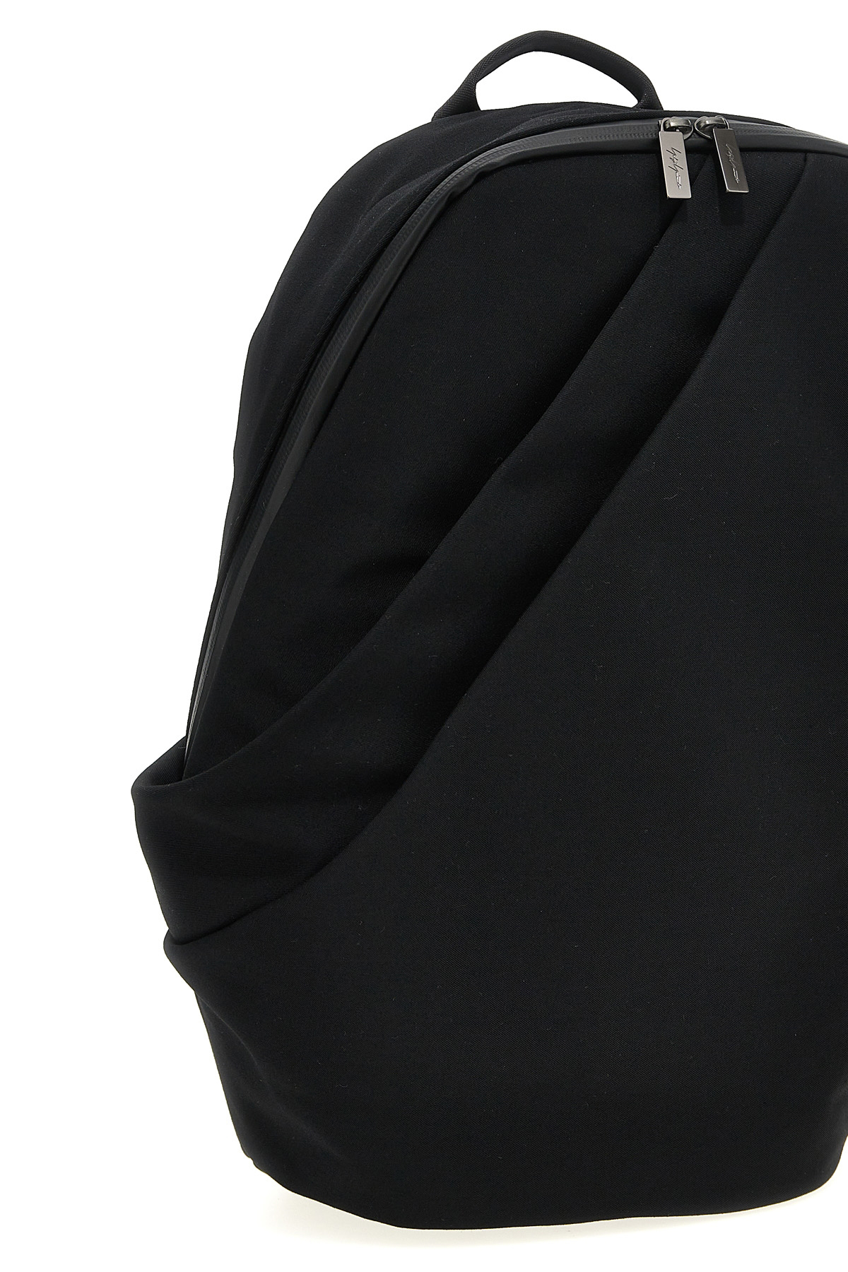 'Tuck' wool gabardine backpack with front pleat, zip closure, adjustable shoulder straps and reinforced Cordura backrest, pockets.