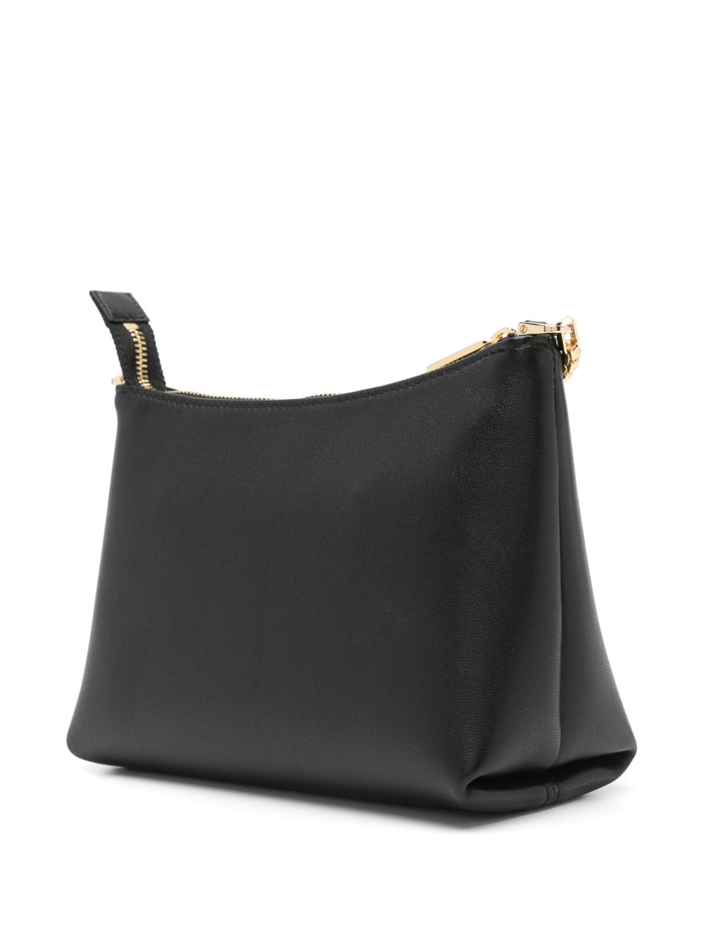 black top zip fastening leather and chain-link shoulder strap internal card slots bow detailing