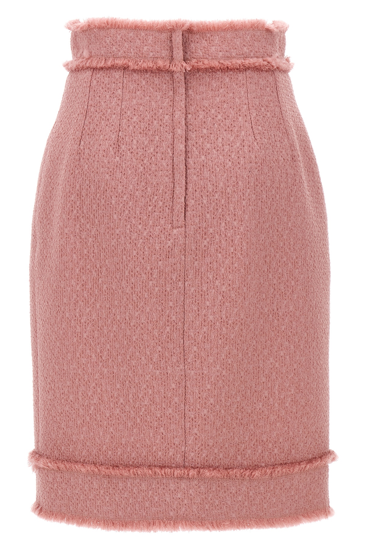 'Rachel' tweed longuette skirt with high waist sheath dress, front metal logo, stretch silk satin lining, back zip closure.