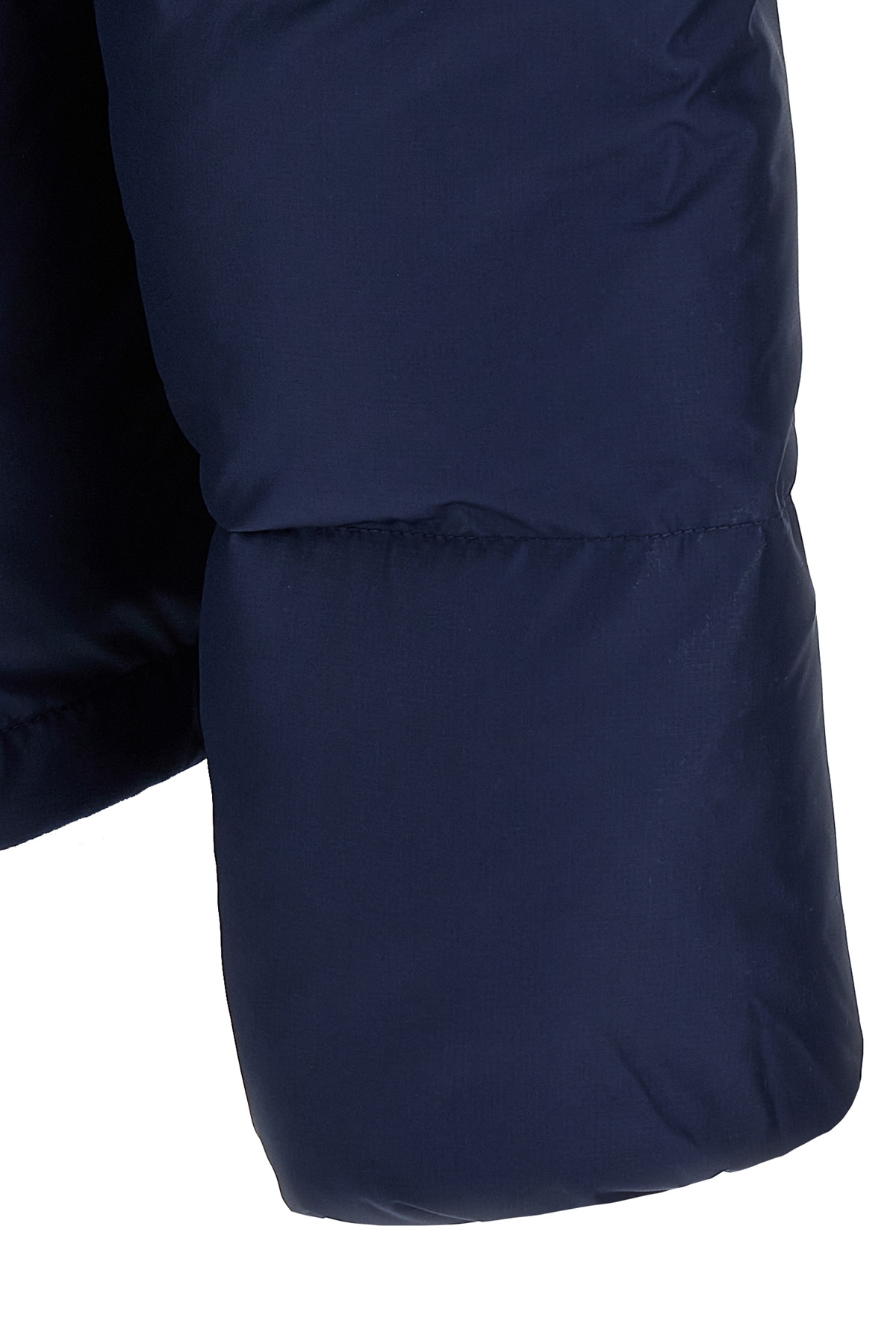 'Saikuru' down jacket in water-repellent padded DWR fabric with logo embroidery on the front and back, standing collar, zip closure, long sleeves, pockets, drawstring at the hem.