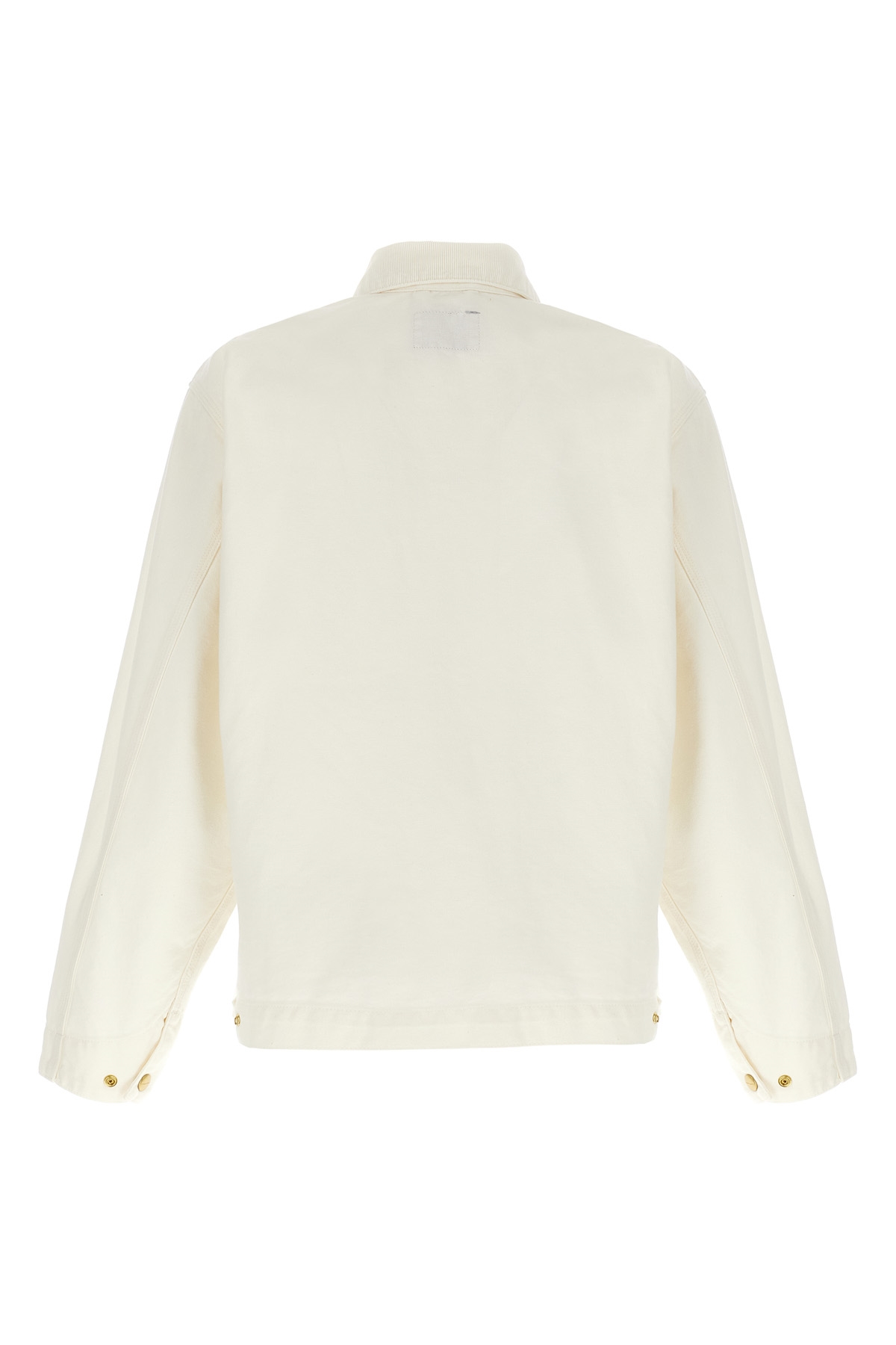 'OG Detroit' jacket in heavy Dearborn canvas with tonal corduroy collar, front logo patch, zip closure, pockets, long sleeves. SUSTAINABLE: This product is made of organic cotton.