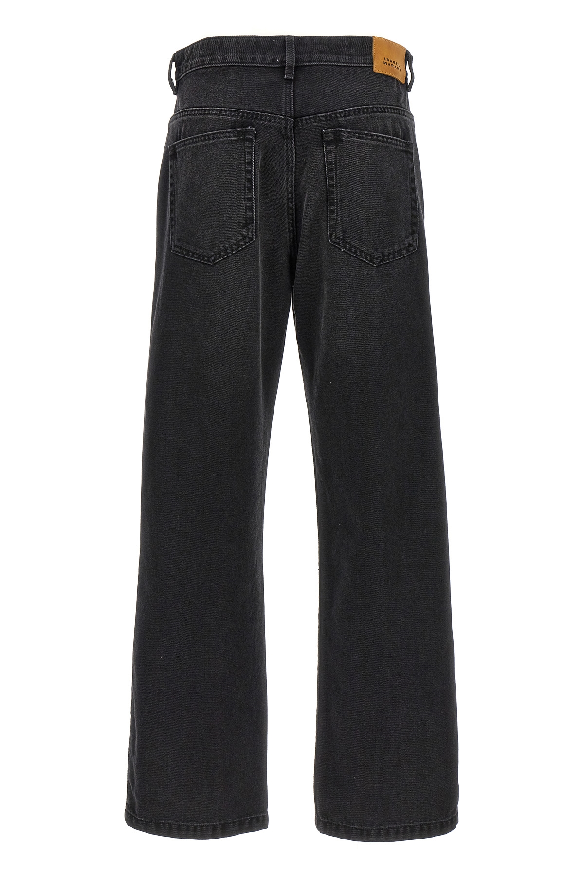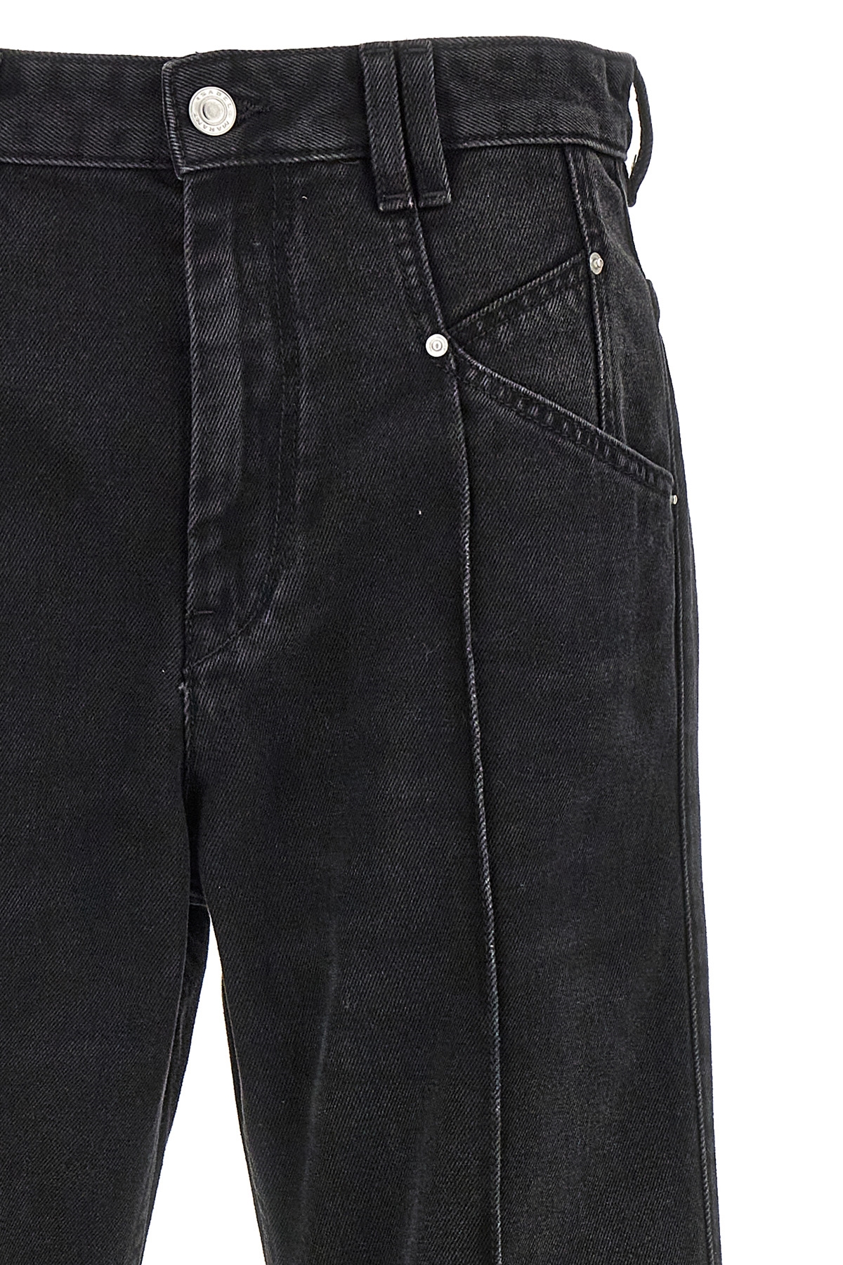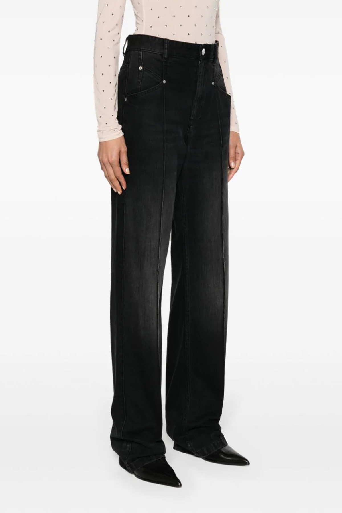'Nadege' cotton denim jeans with visible stitching detail on the leg, zip and button closure, pockets.