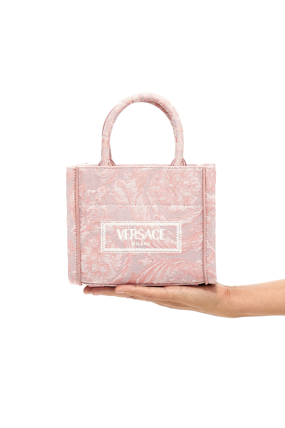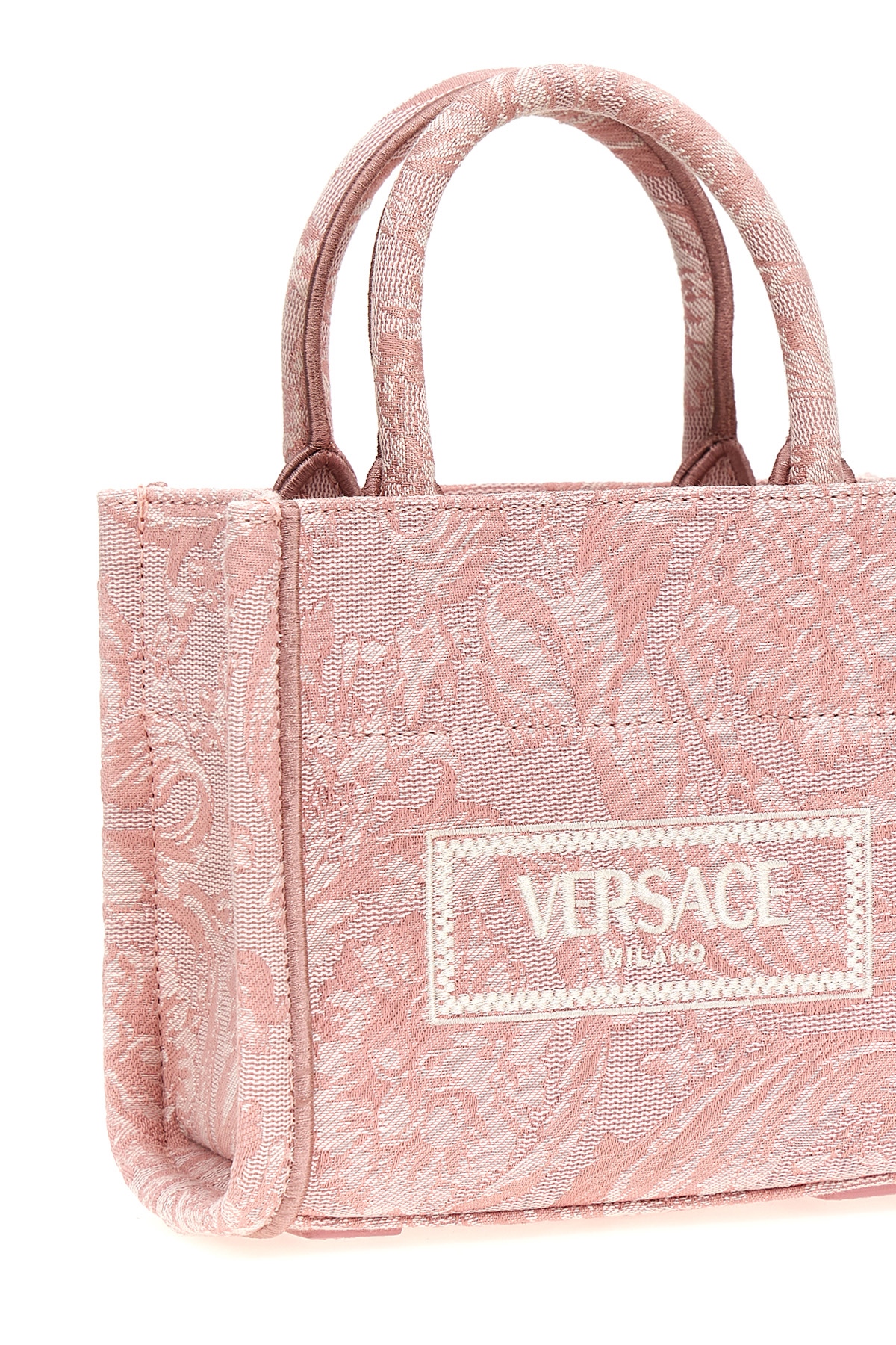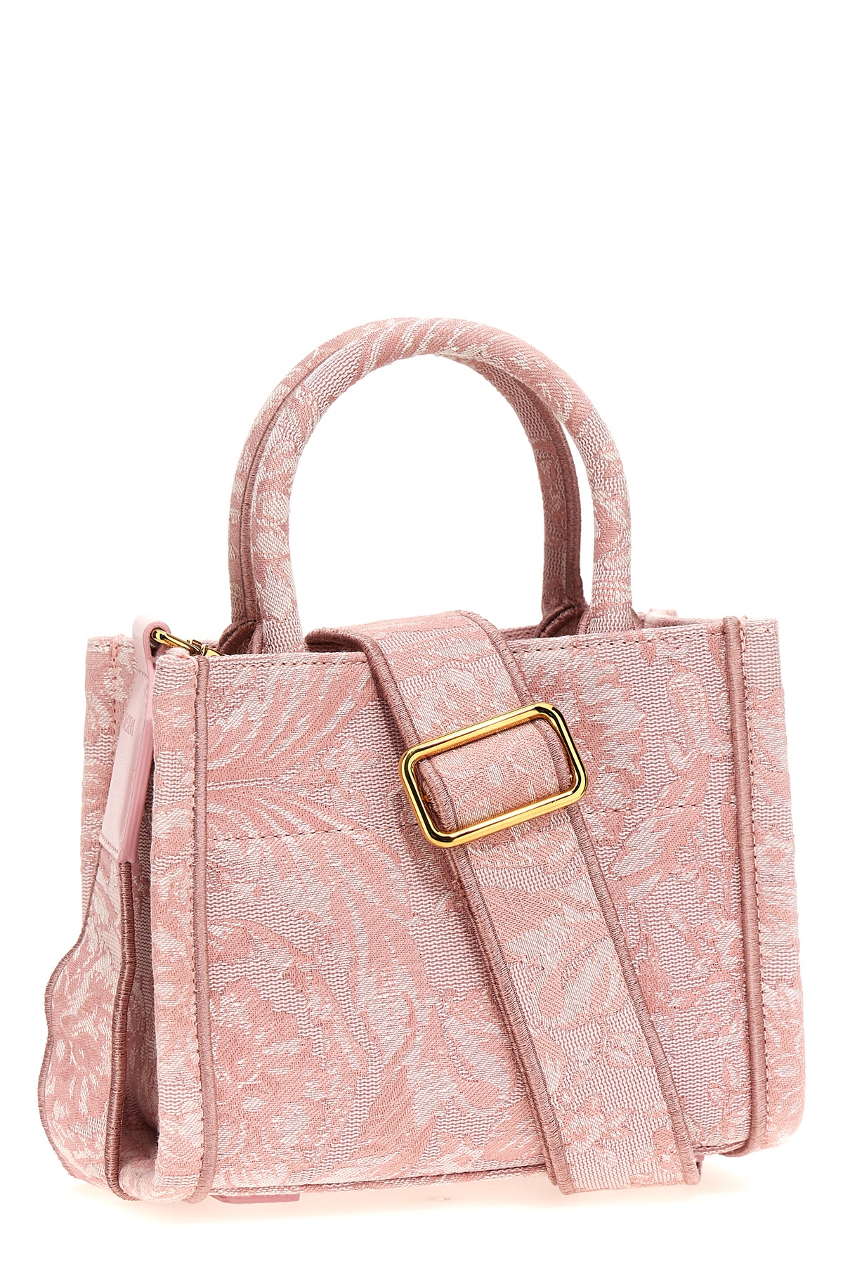 'Extra Small Athena' shopping bag in Barocco jacquard fabric with front logo embroidery, double handle, adjustable and removable shoulder strap.