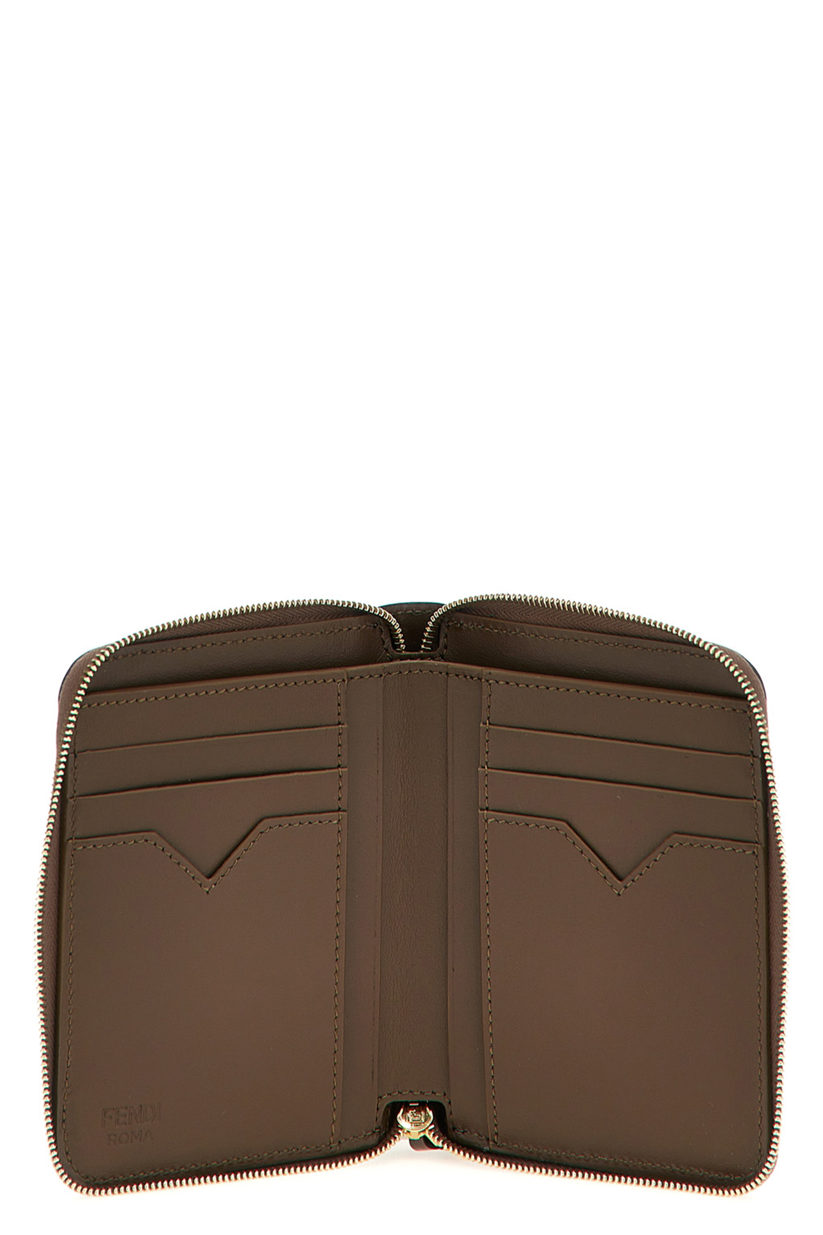 Medium leather 'FF Diamonds' wallet with embossed FF print, front metal logo, zipper closure on three sides, back pocket with zip closure.