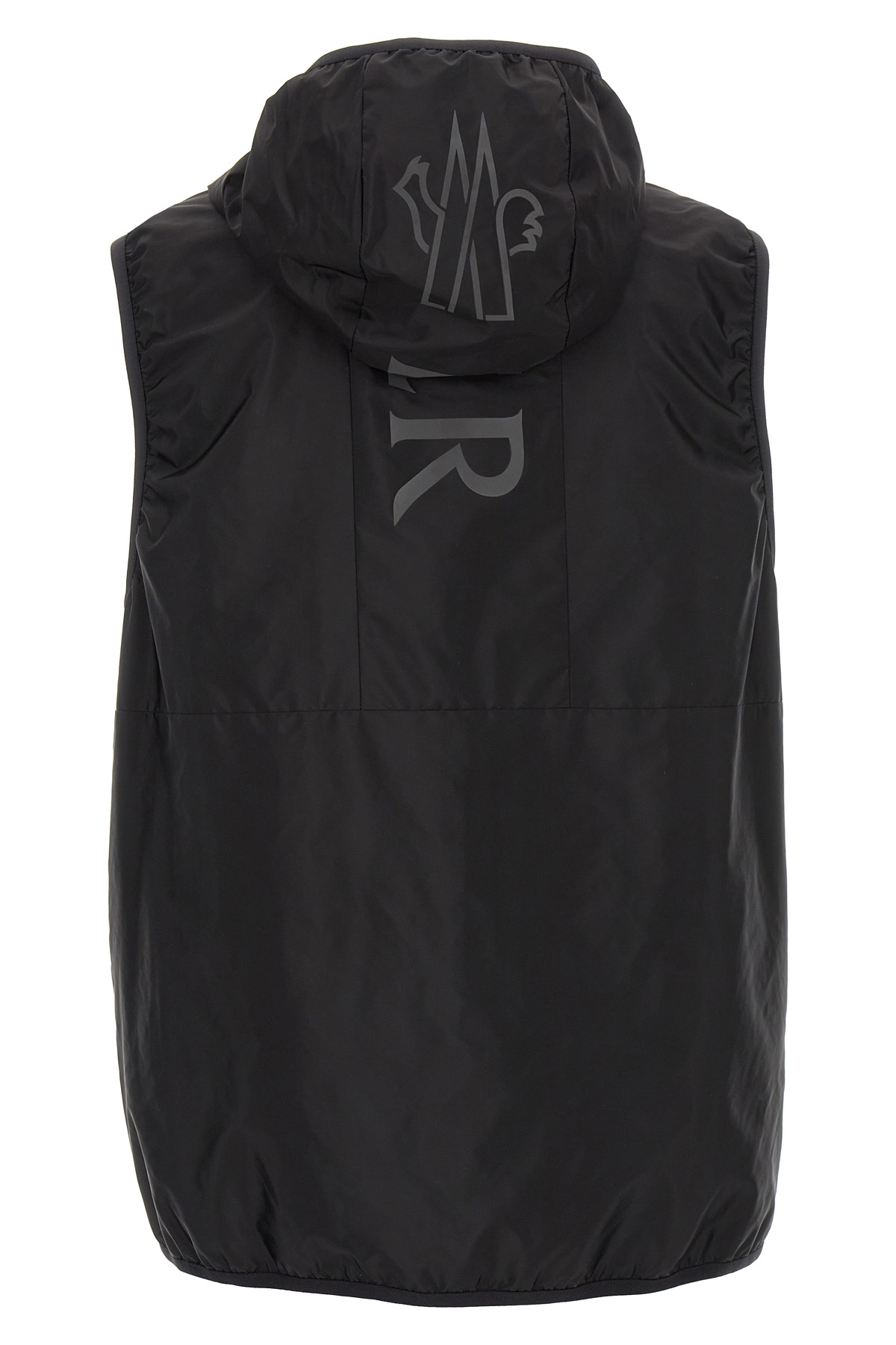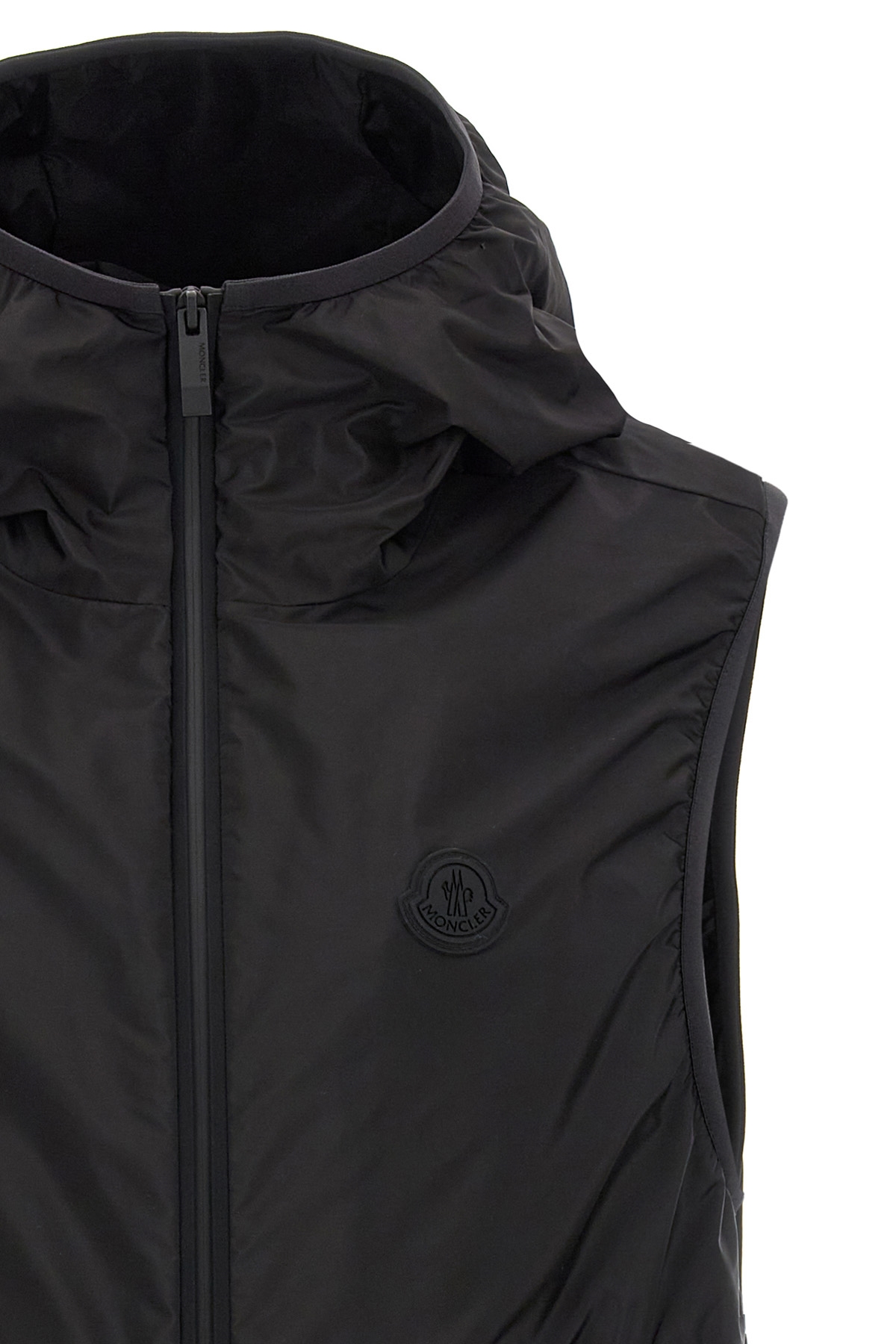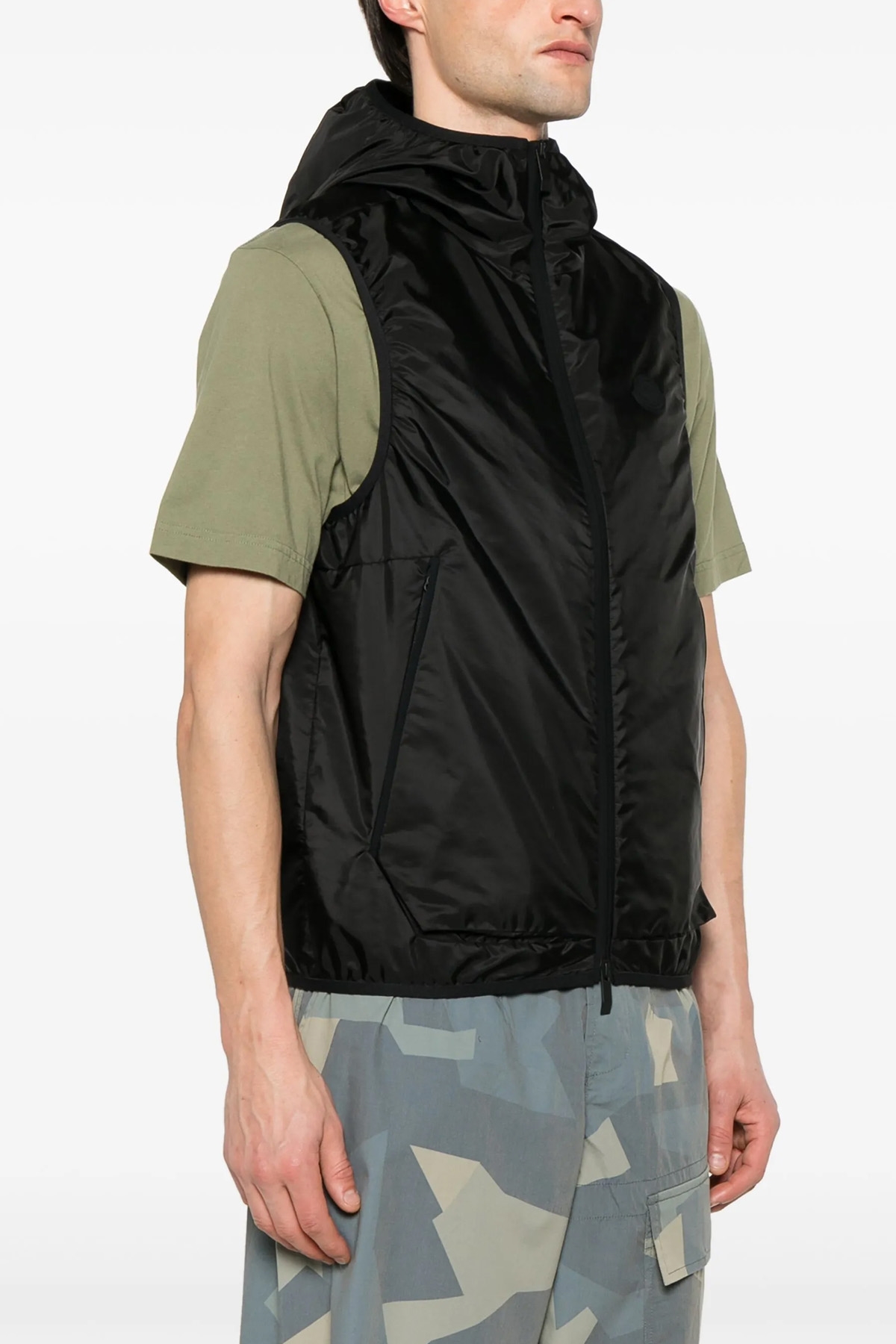 'Moretan' waistcoat in technical nylon with front silicone logo patch, hood with back logo print, front zip closure, pockets.
