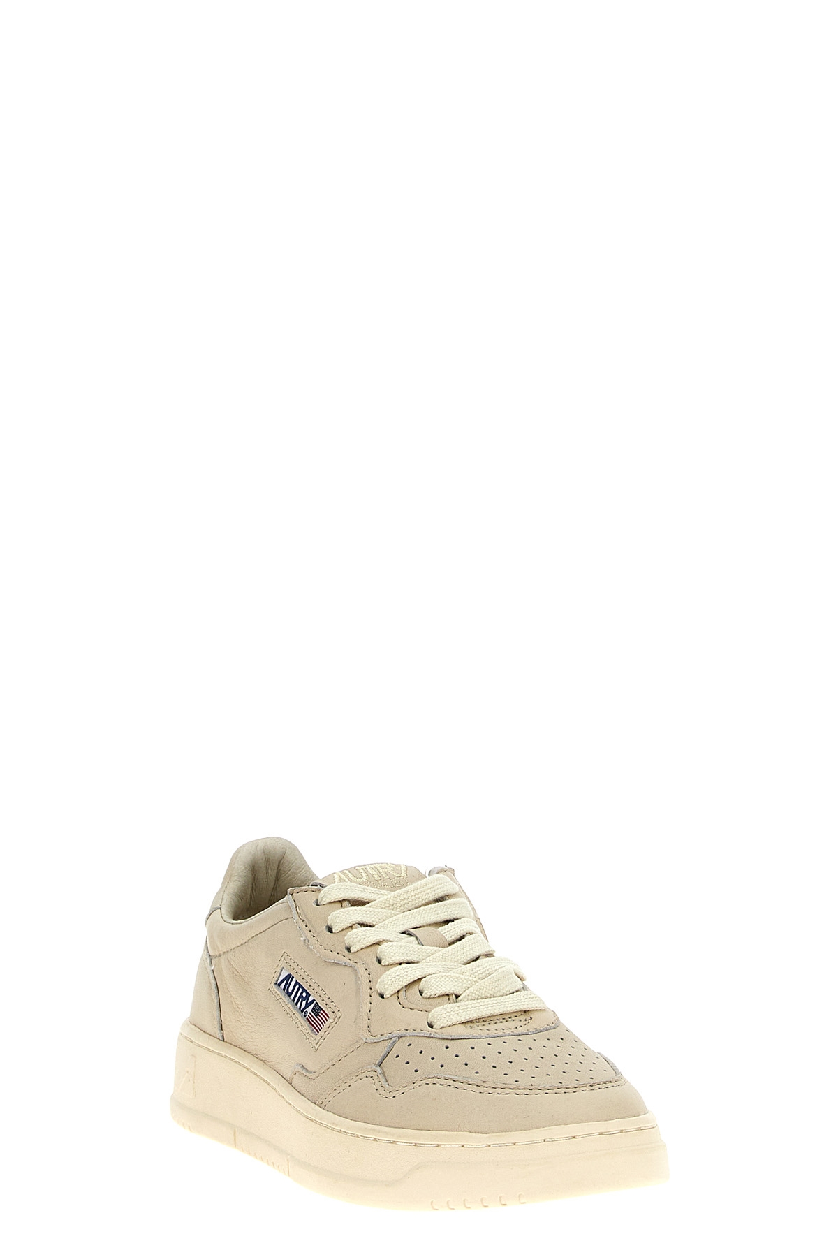 'Medalist Low' washed goat leather sneakers with laces and rubber sole.