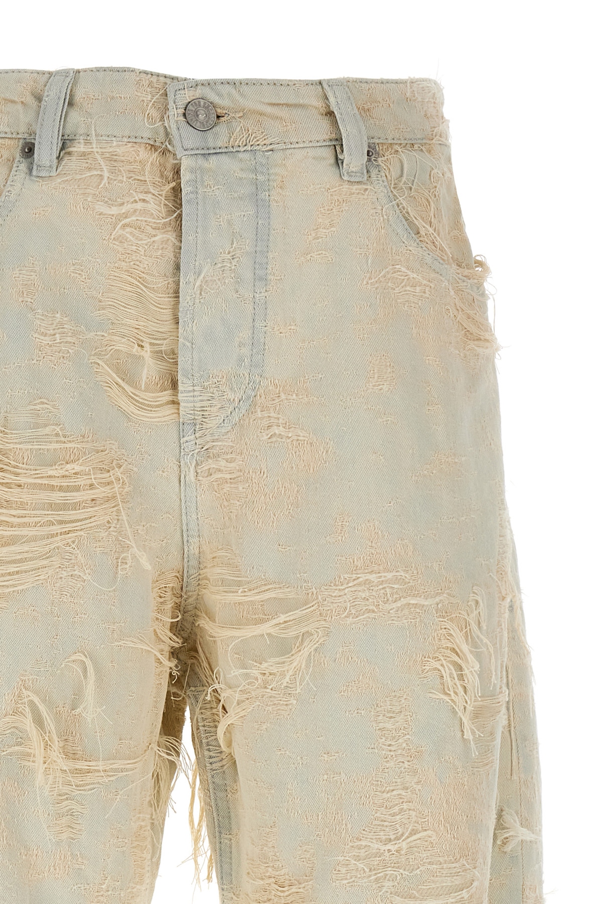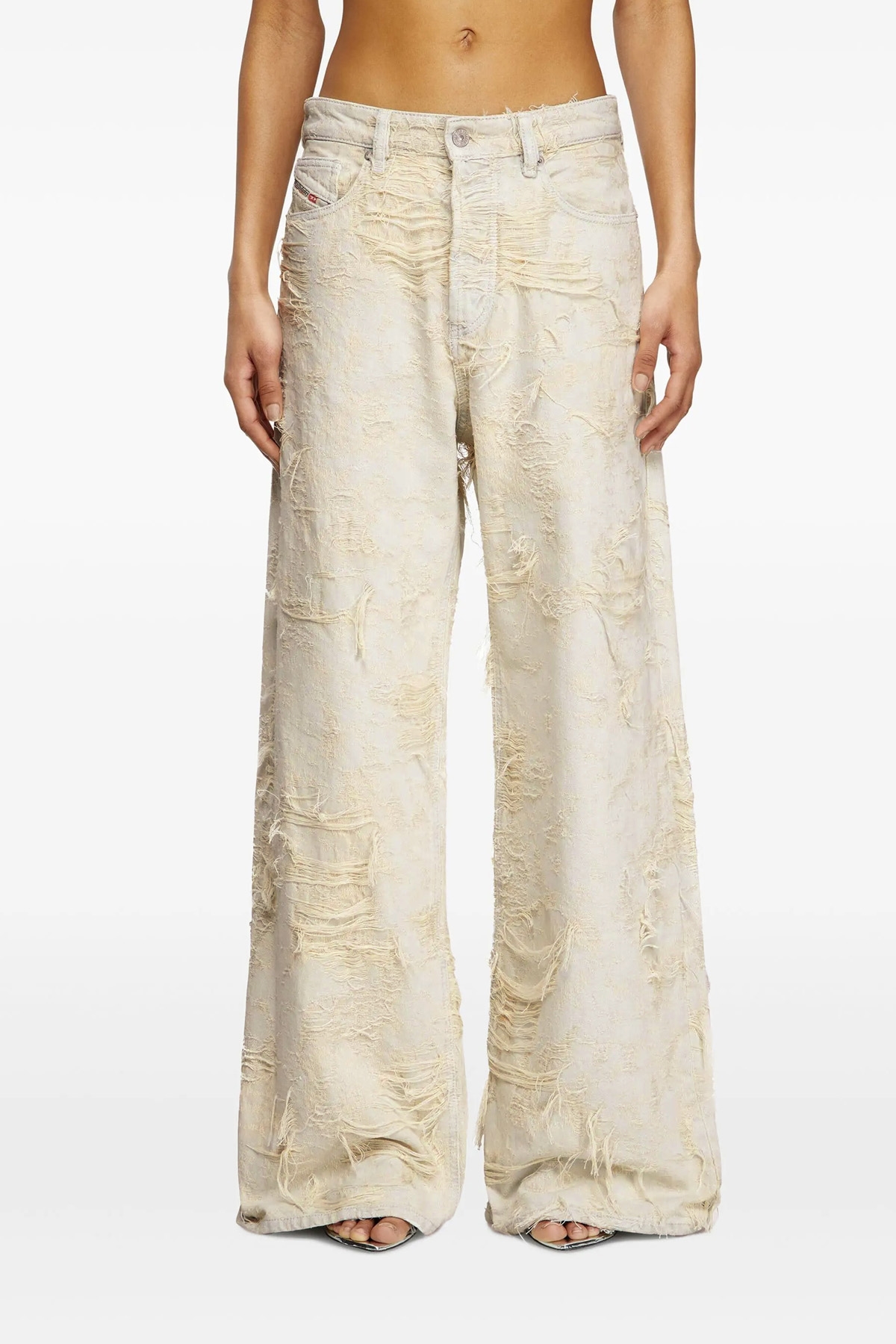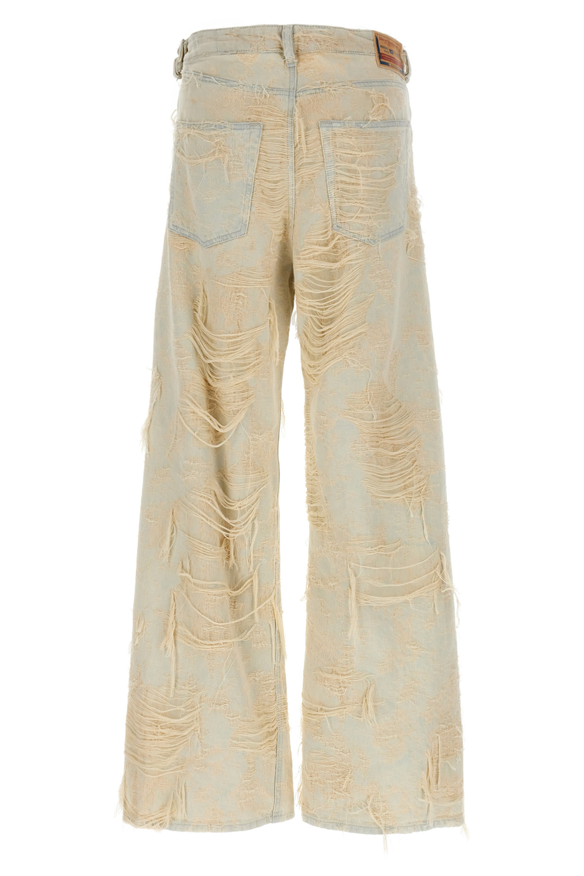 '1996 D-Sire 09m40' stonewashed cotton denim jeans with jacquard weave on a distressed and destroyed effect double frame, low waist low crotch and extra-long and wide leg, front button closure, five pockets, back leather logo tag.