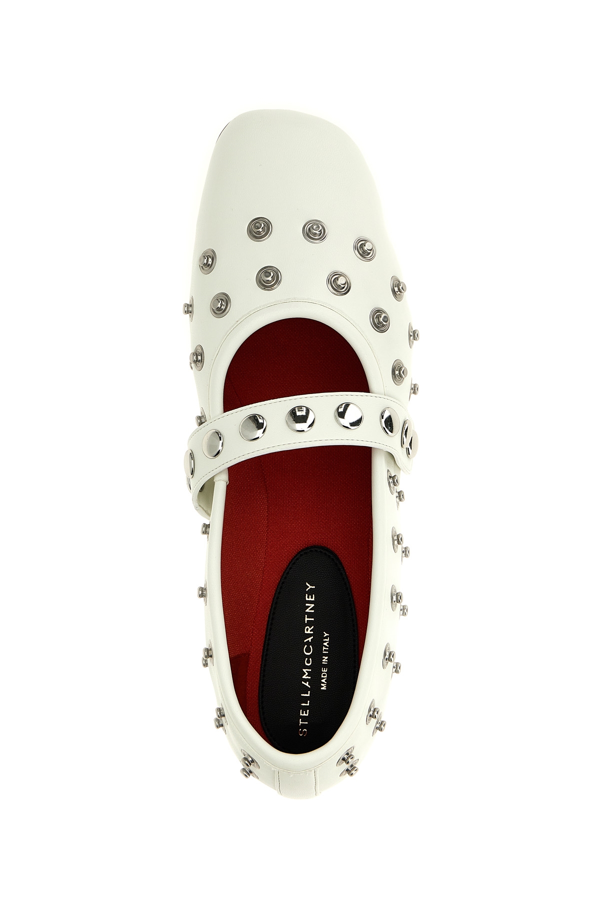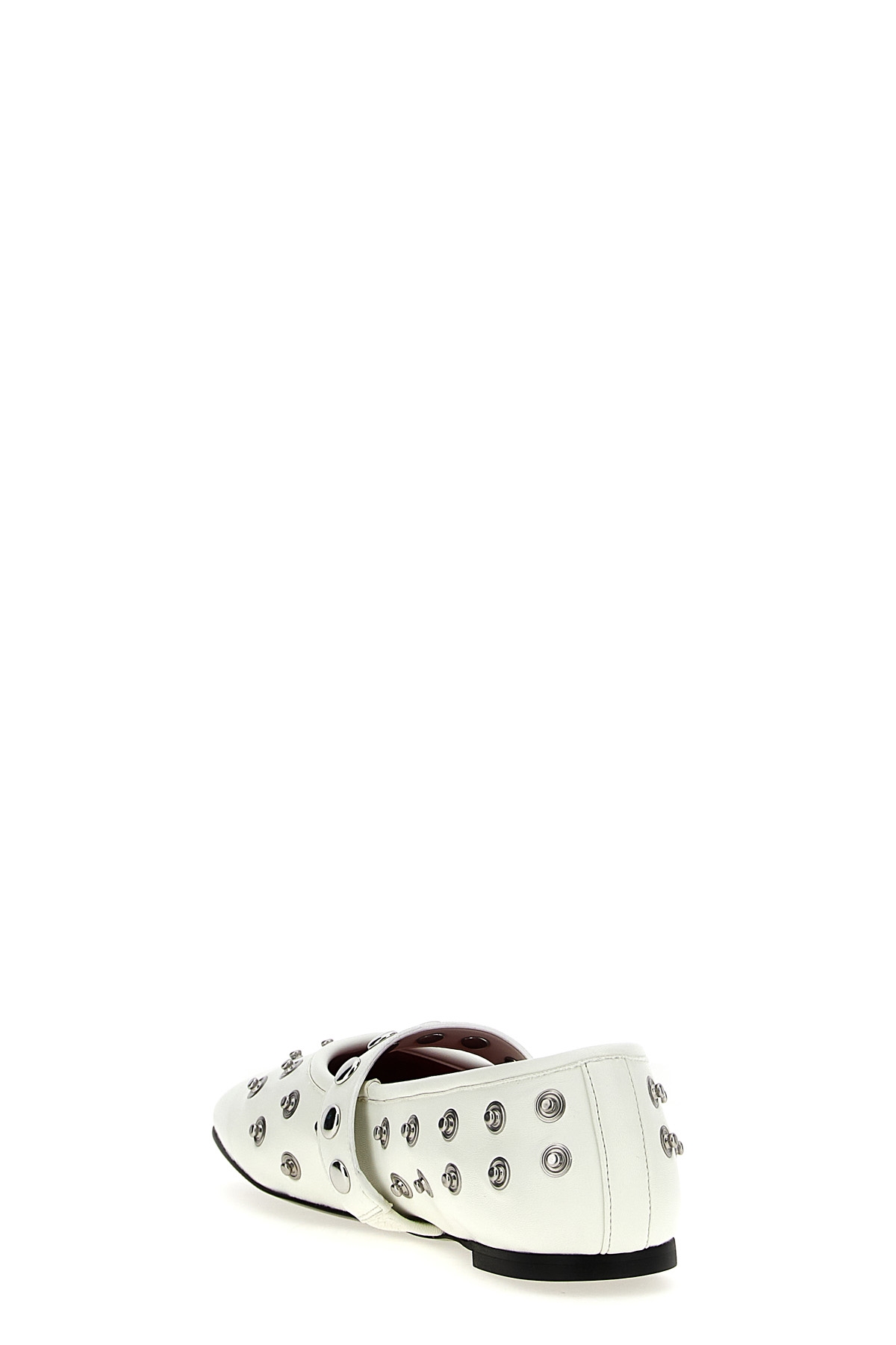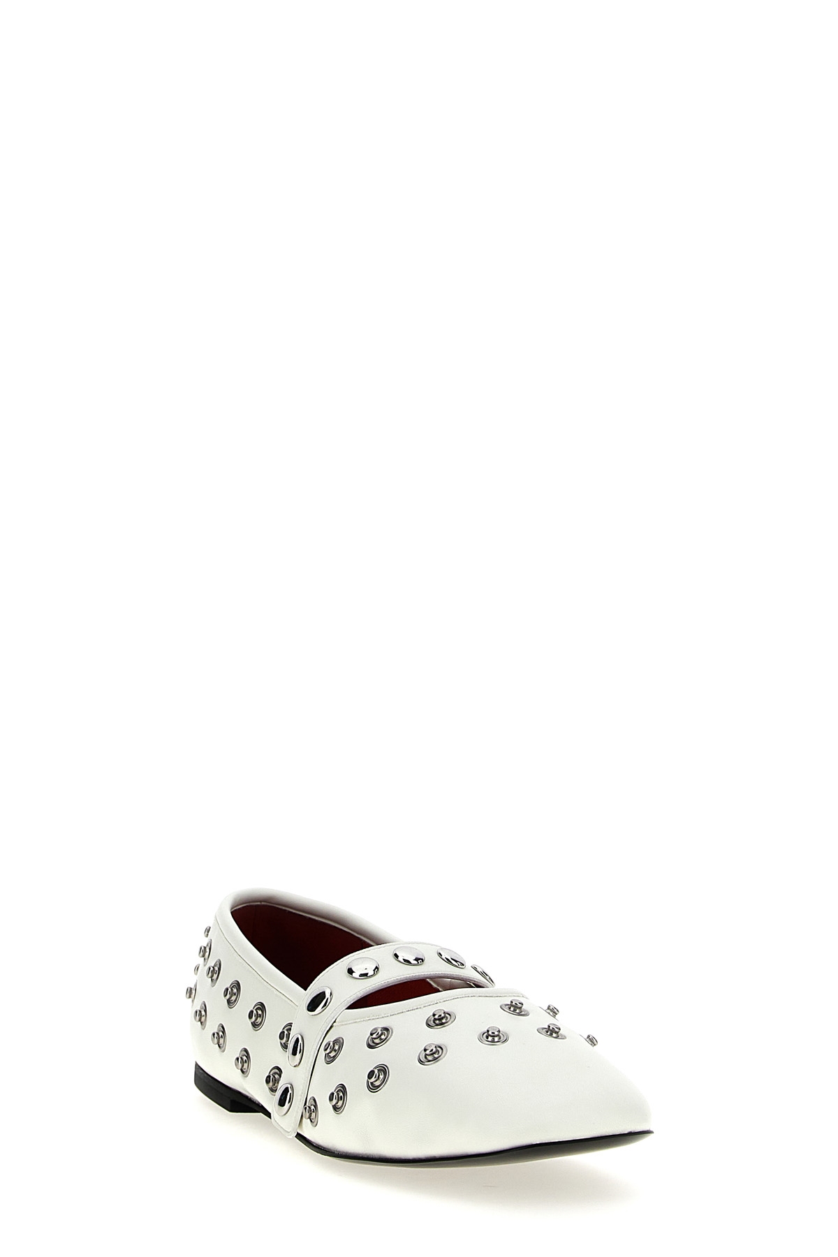 'Ryder' ballet flats in leather-effect fabric with all-over silver studs, adjustable strap that can be positioned as desired, lining with padding and anti-humidity technology, rubber sole.