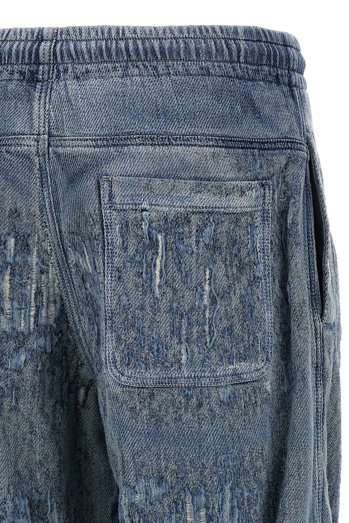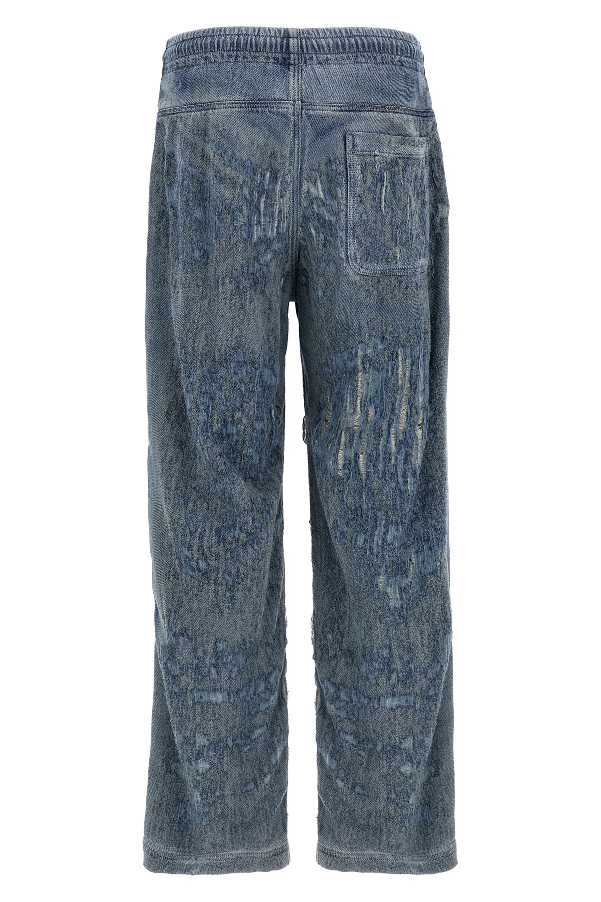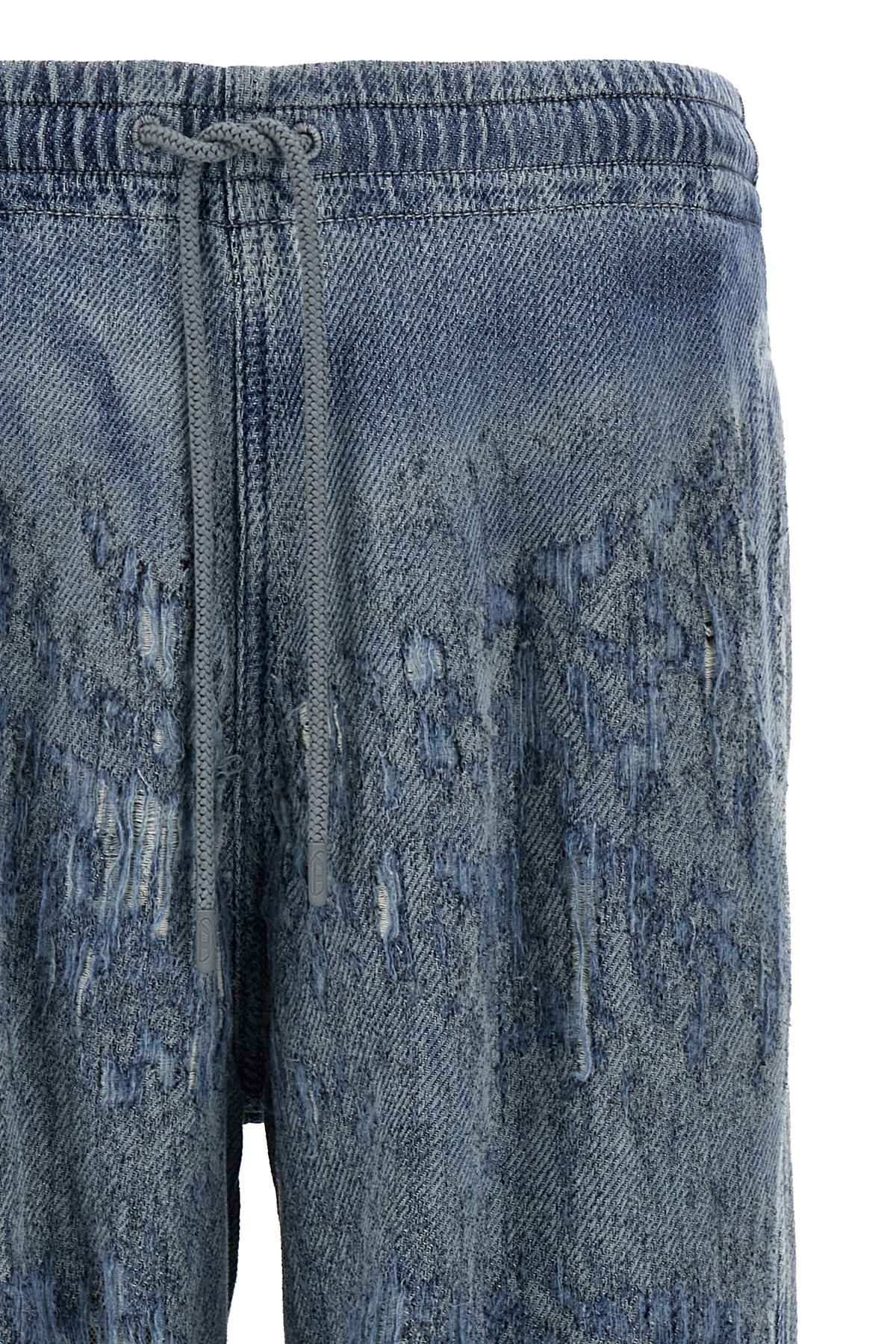 'D-Enimos 068rq' ultra-distressed denim jeans with extra long wide leg, adjustable drawstring elastic at the waist, pockets.