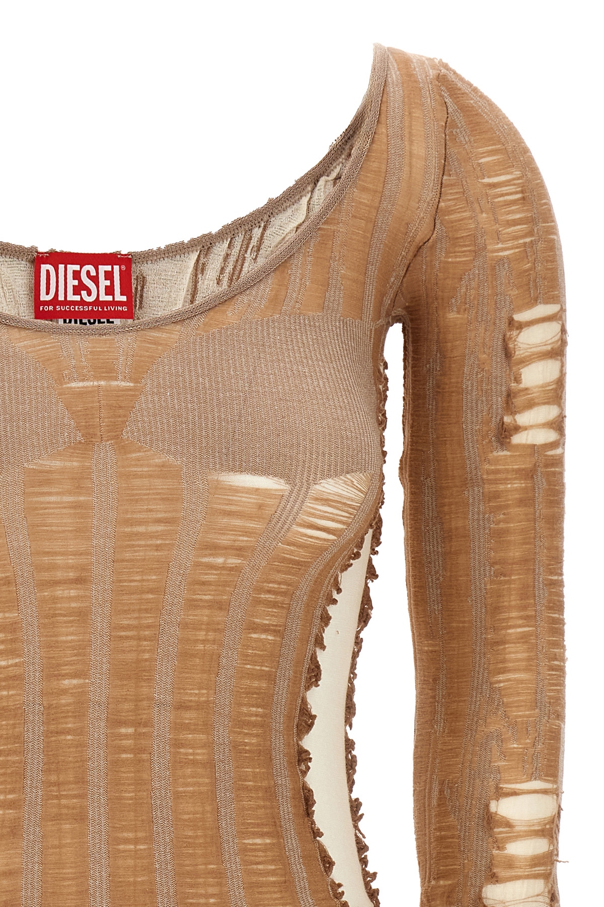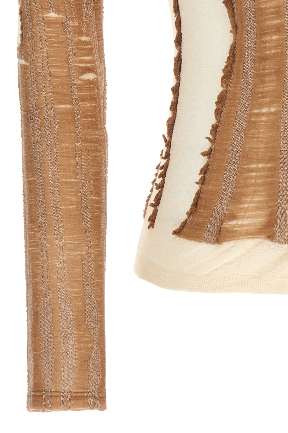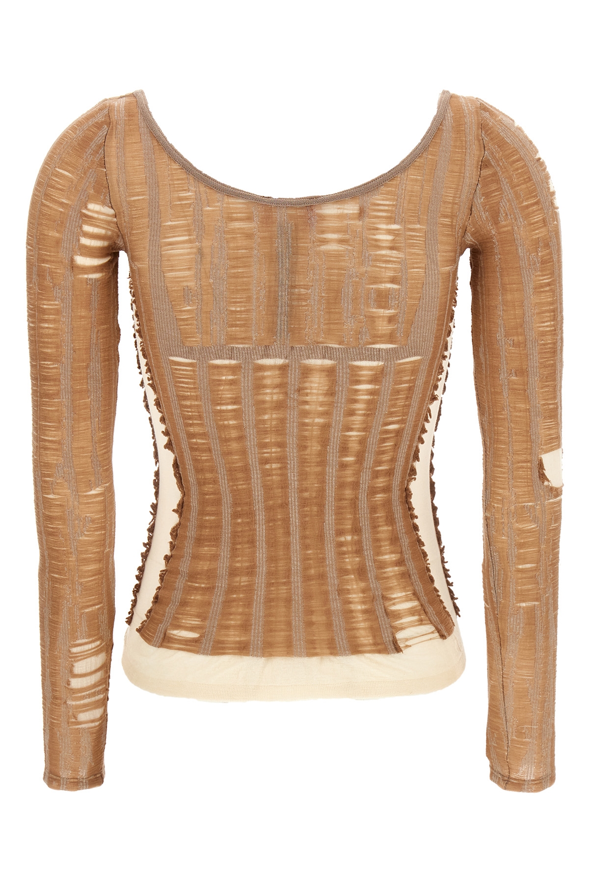 'M-Calai' top in stretch cotton blend with distressed stretch mark effects, seamless lingerie effect created by the jacquard pattern on the bust, round wide neckline, long sleeves.