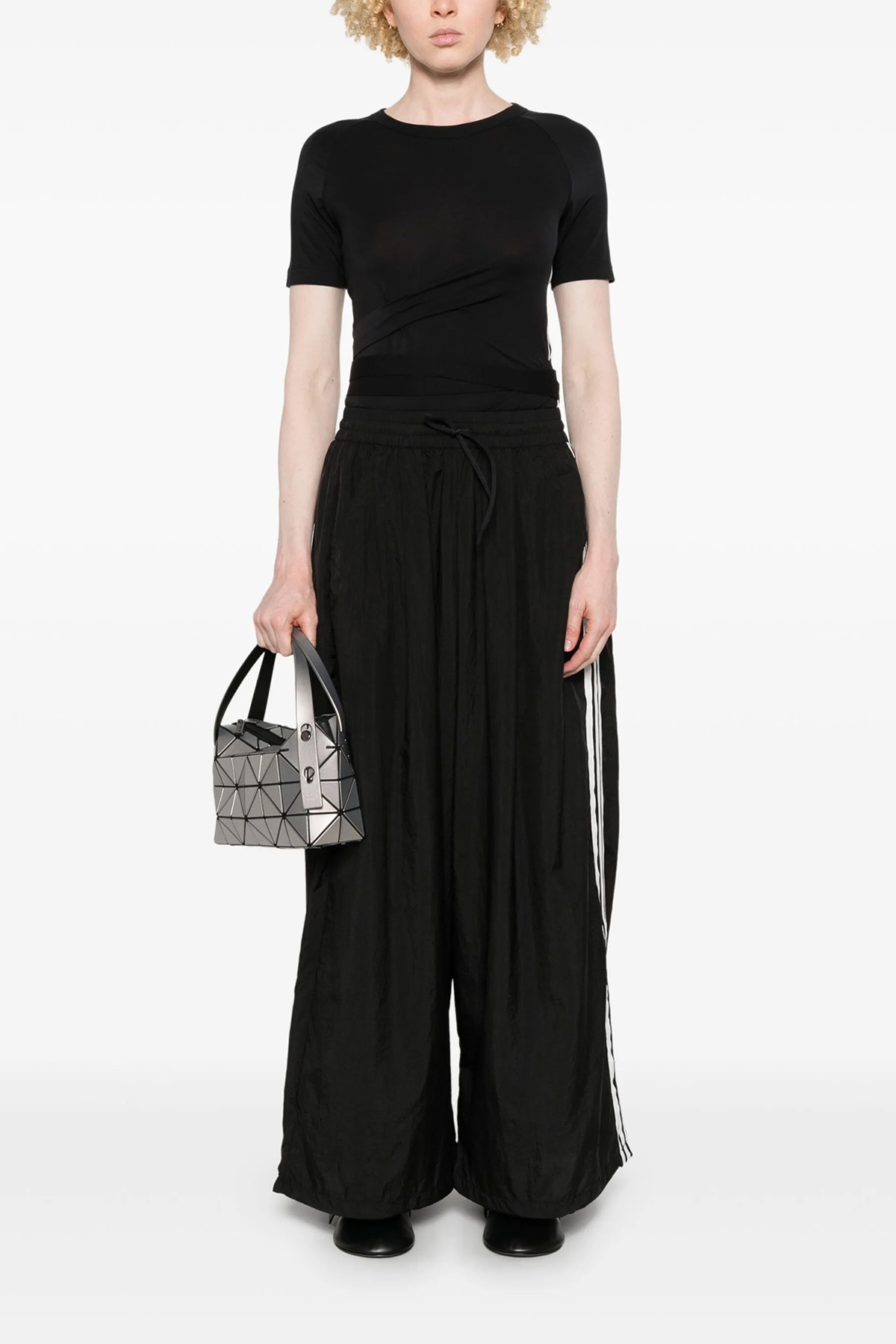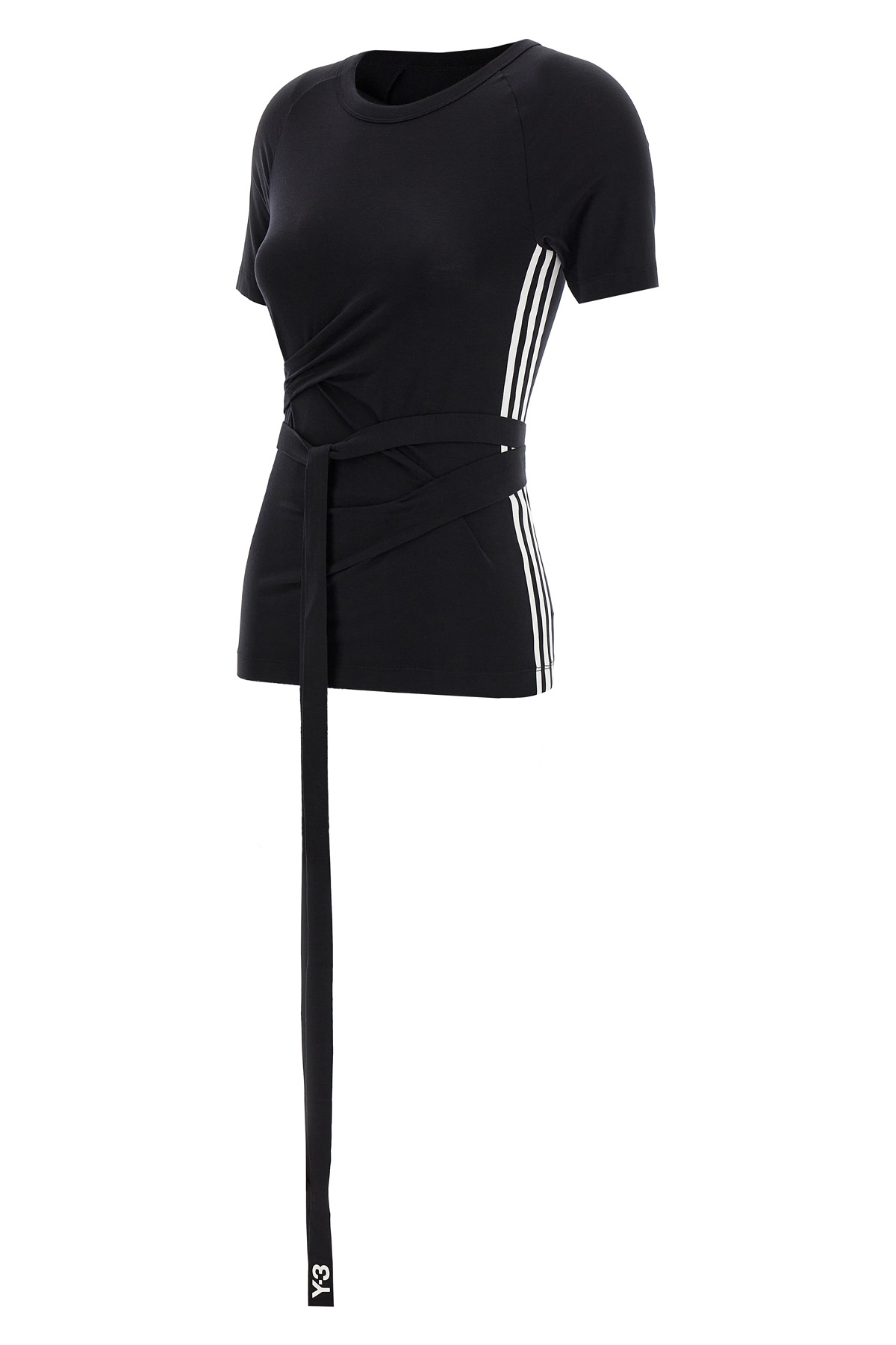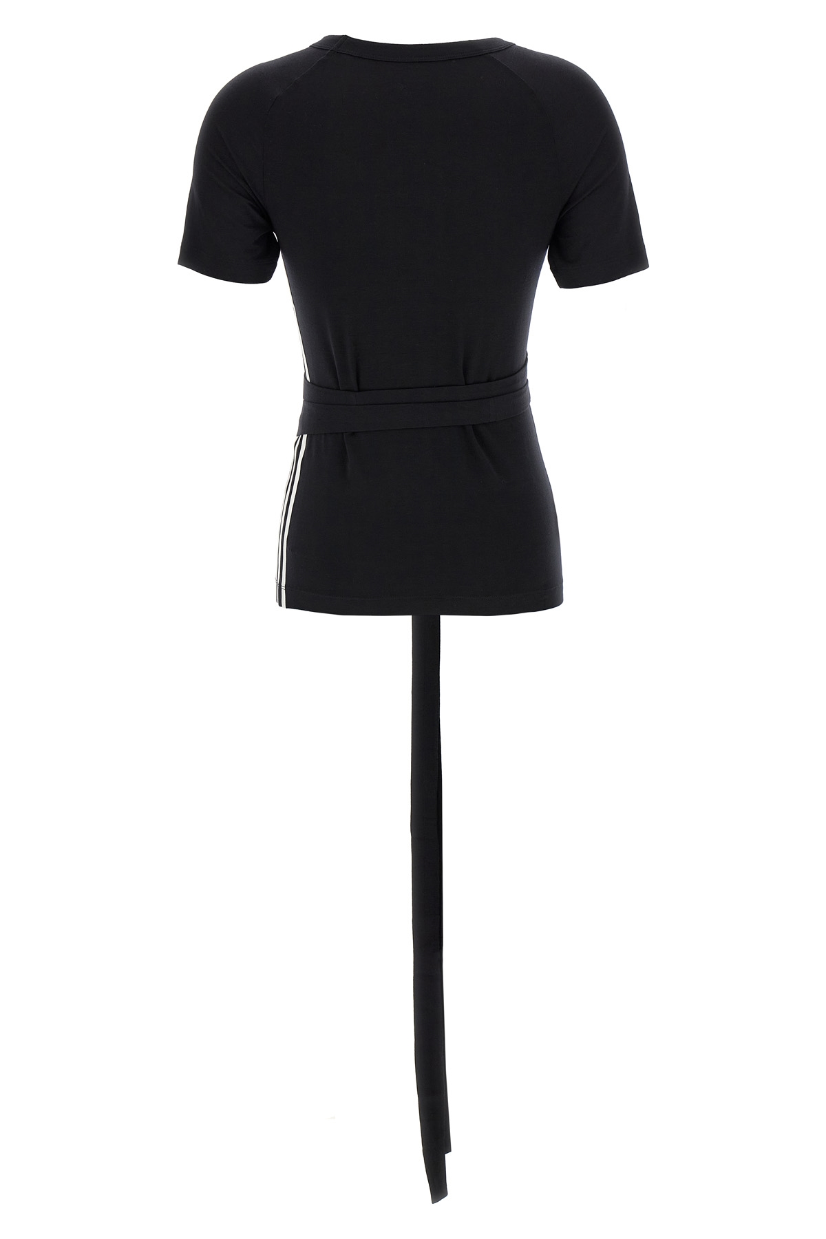 T-shirt in stretch lyocell with contrasting details, crew neck, short sleeves, tapes at the waist to tie as desired.