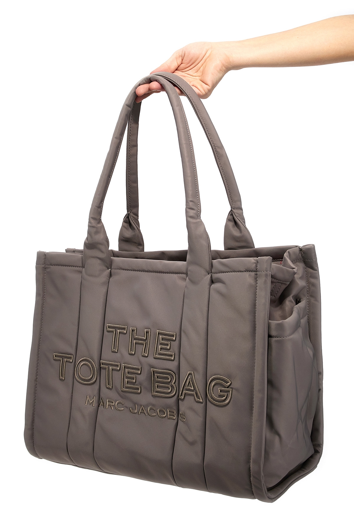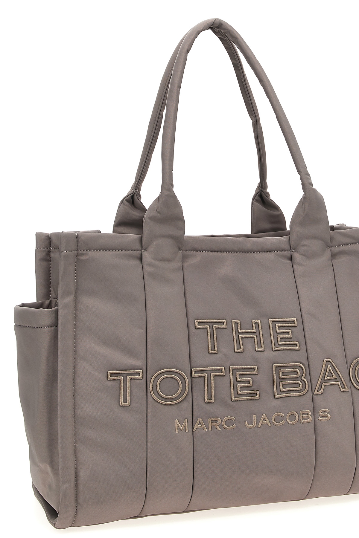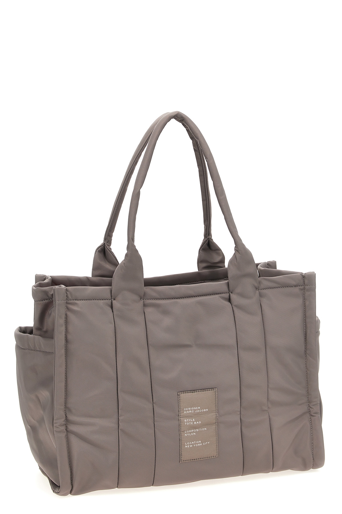 The Puffy Nylon Large Tote shoulder bag in puffy nylon with embossed tone-on-tone logo embroidery on the front, double fixed handle, zip closure, and side pockets.