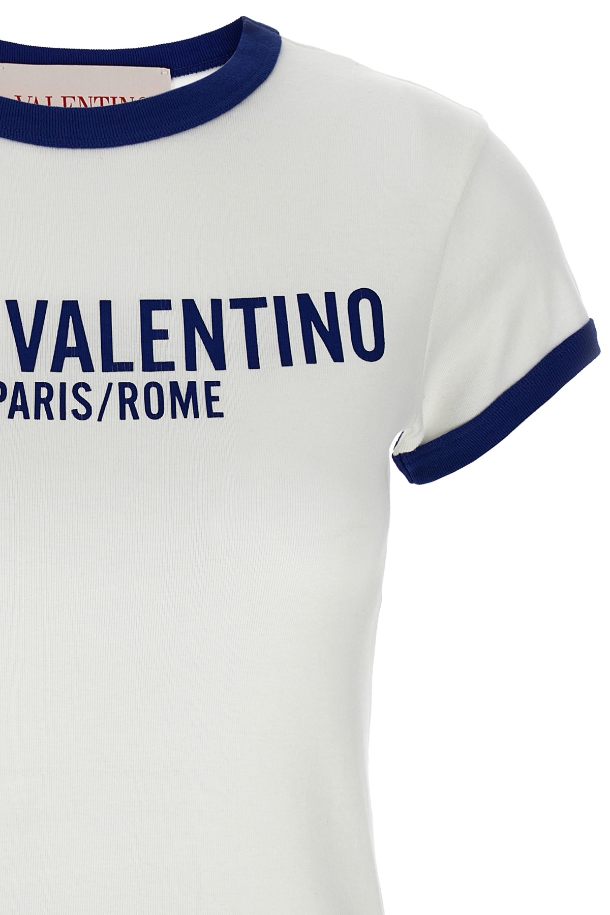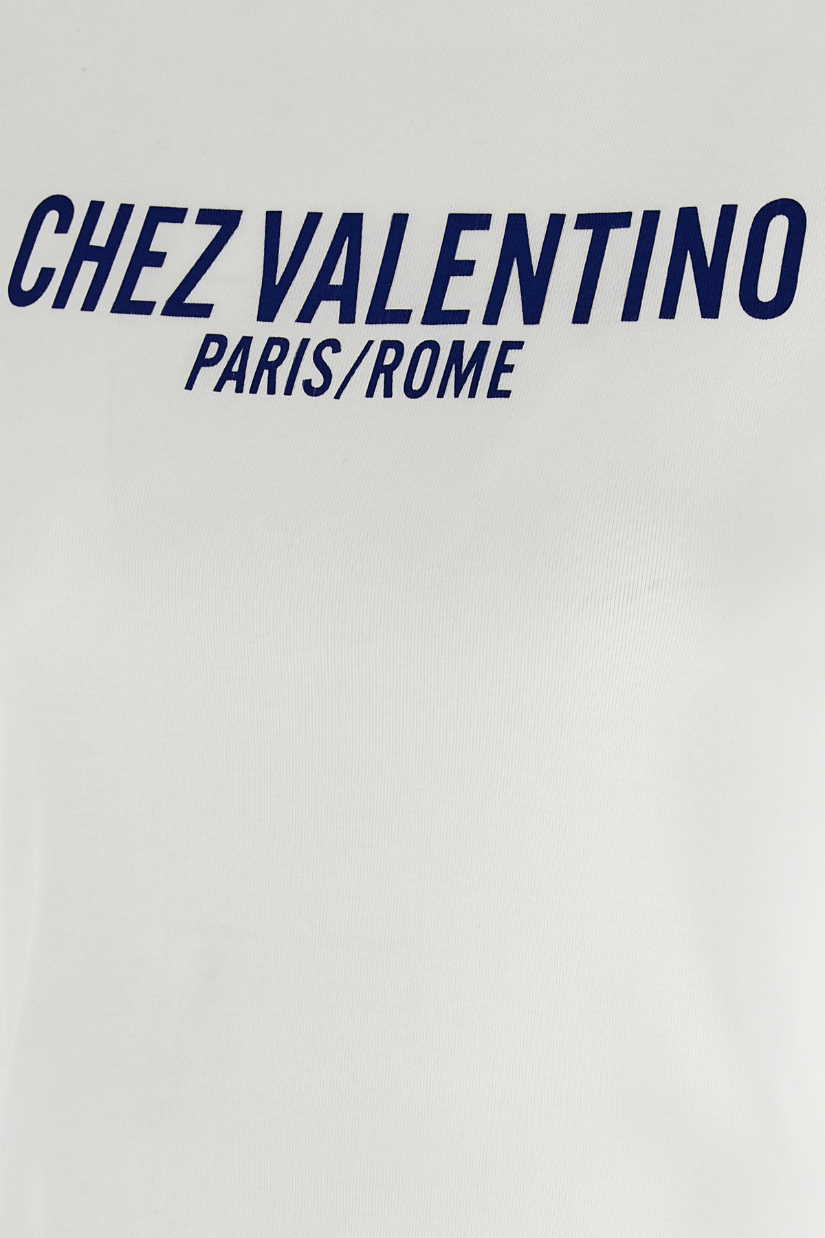 Cotton jersey T-shirt with contrasting details, front 'Chez Valentino' print, crew neck, and short sleeves.