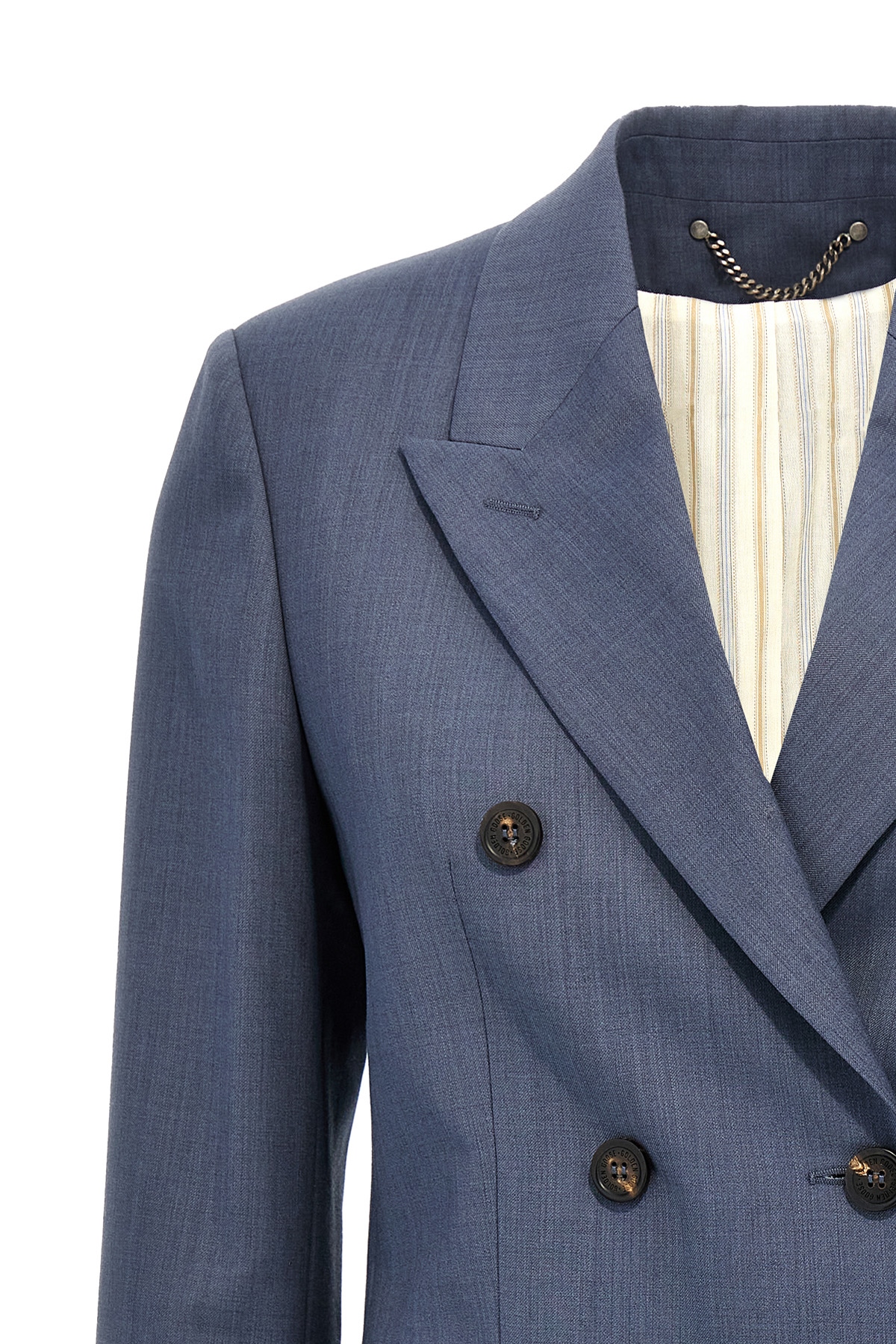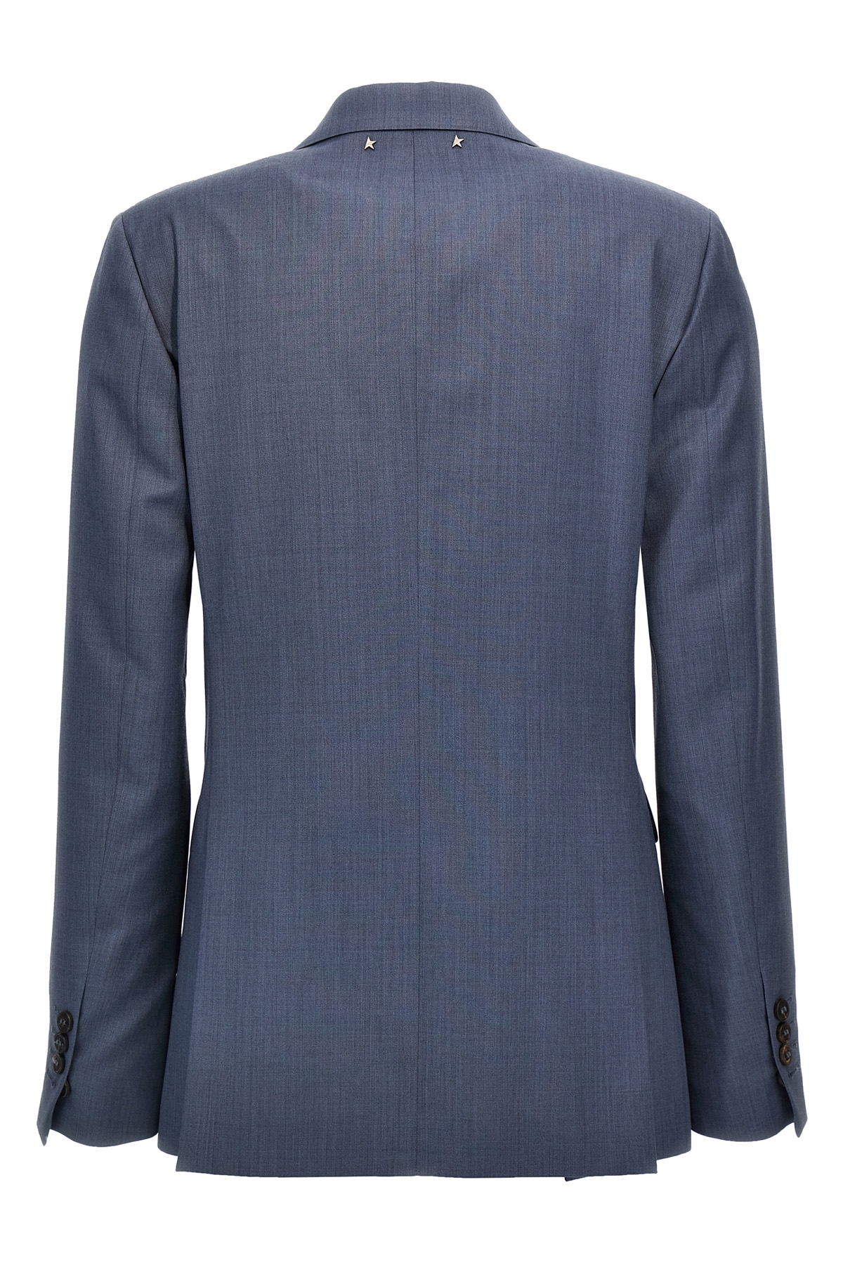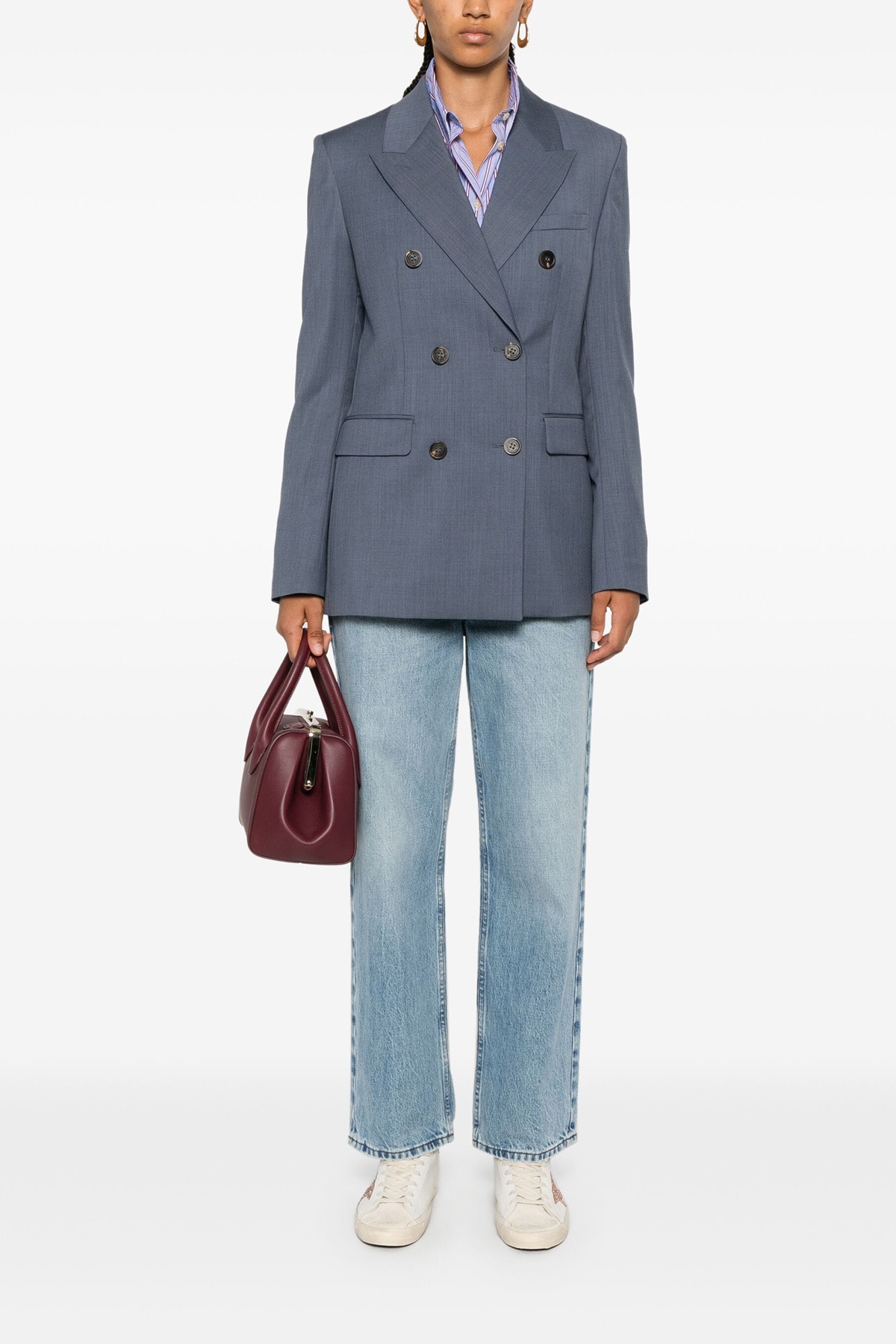'Diva' double-breasted wool blazer with button closure, pockets, padded shoulders, long sleeves, back vents.