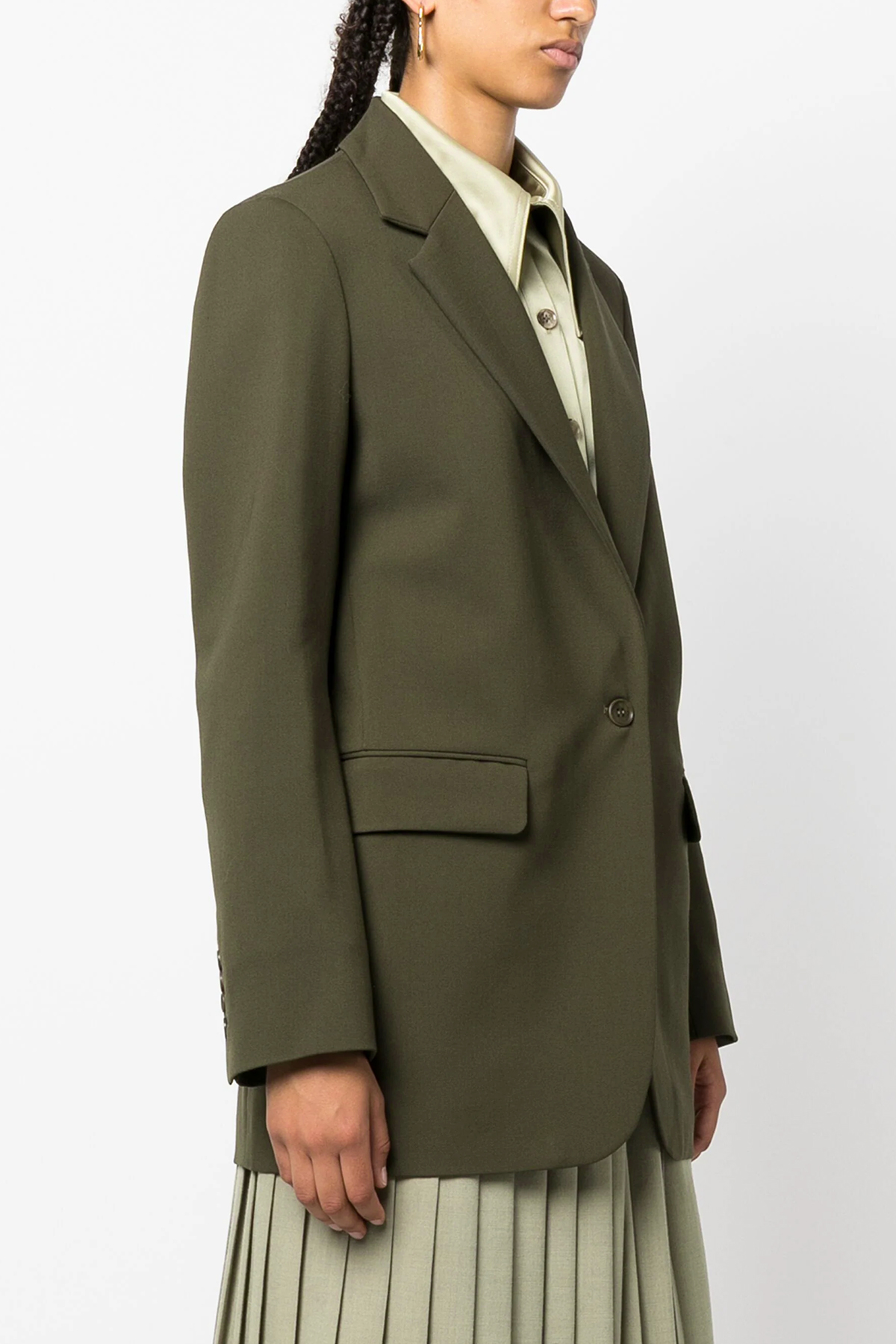 'Lili' single-breasted stretch wool blazer with button closure, pockets, long sleeves, back vents.