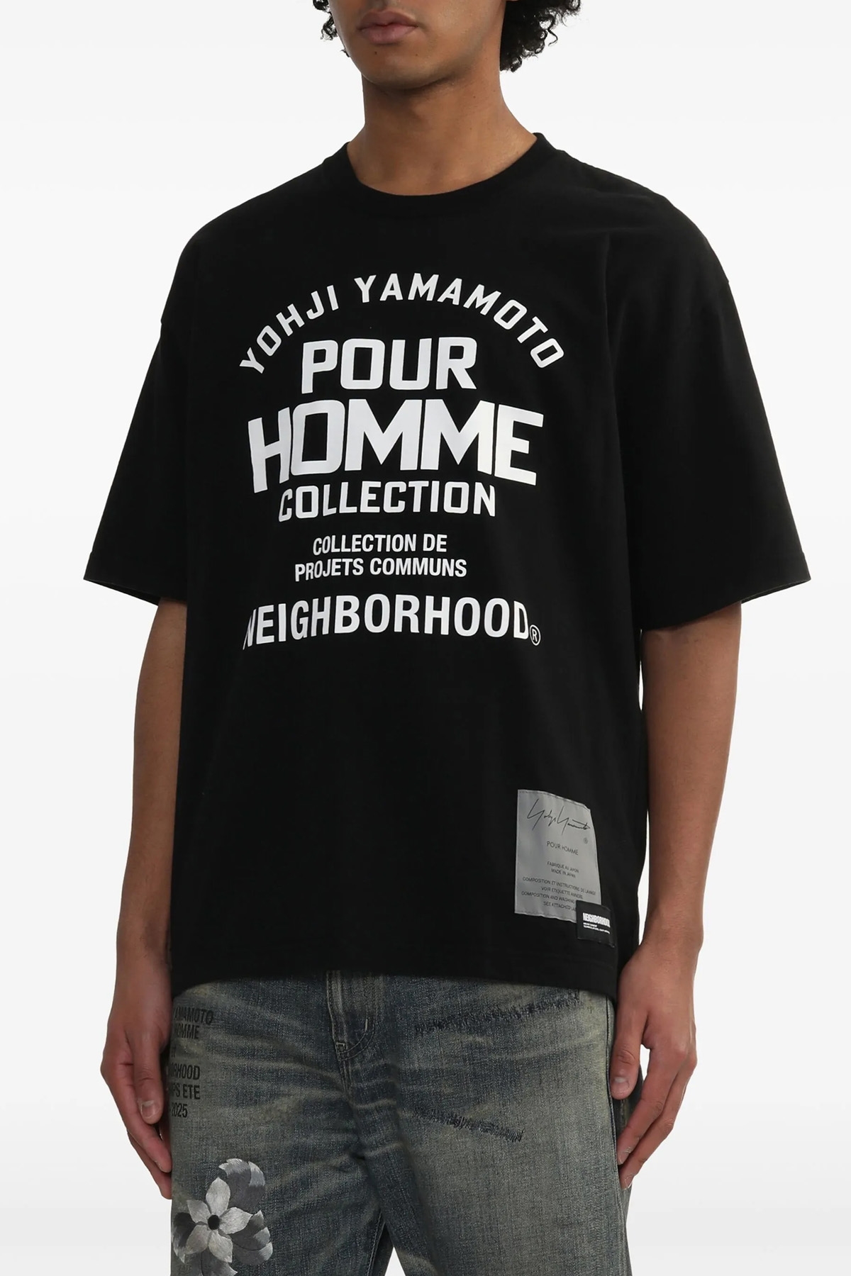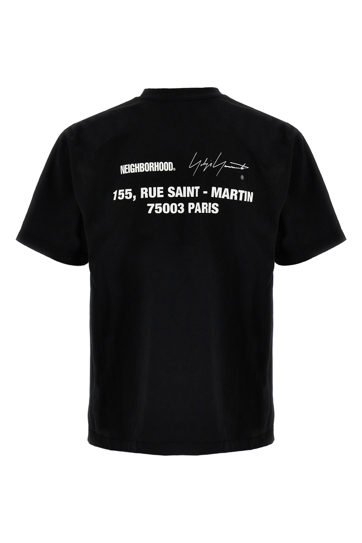 Yohji Yamamoto x NEIGHBORHOOD 'SS-2' cross-stitch cotton t-shrt with front and back print, front logo patch, crew neck, short sleeves.