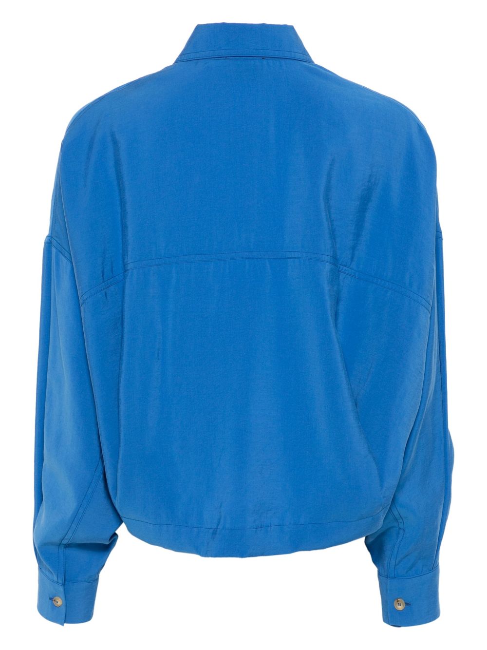 electric blue front button fastening buttoned cuffs drop shoulder long sleeves