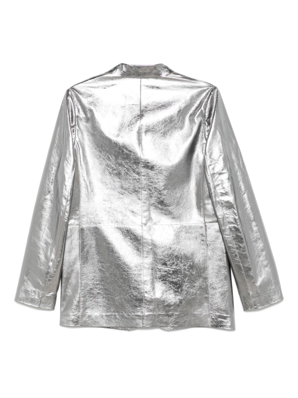 silver-tone front button fastening two front flap pockets long sleeves