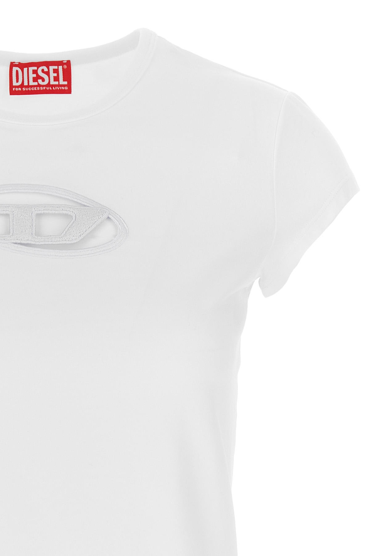 T-Angie crewneck T-shirt in stretch cotton with short sleeves, and front logo with cut-out details.