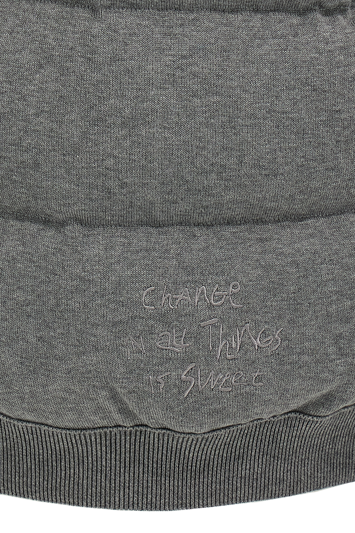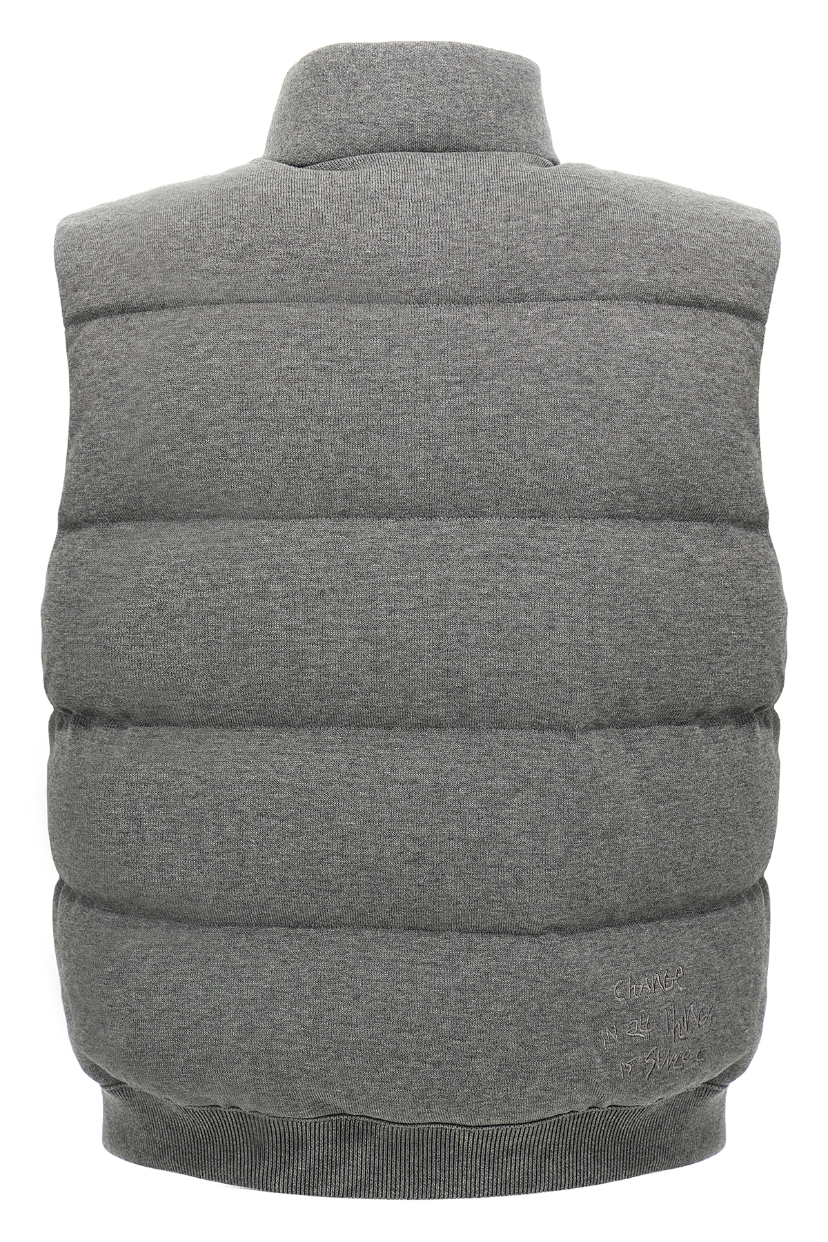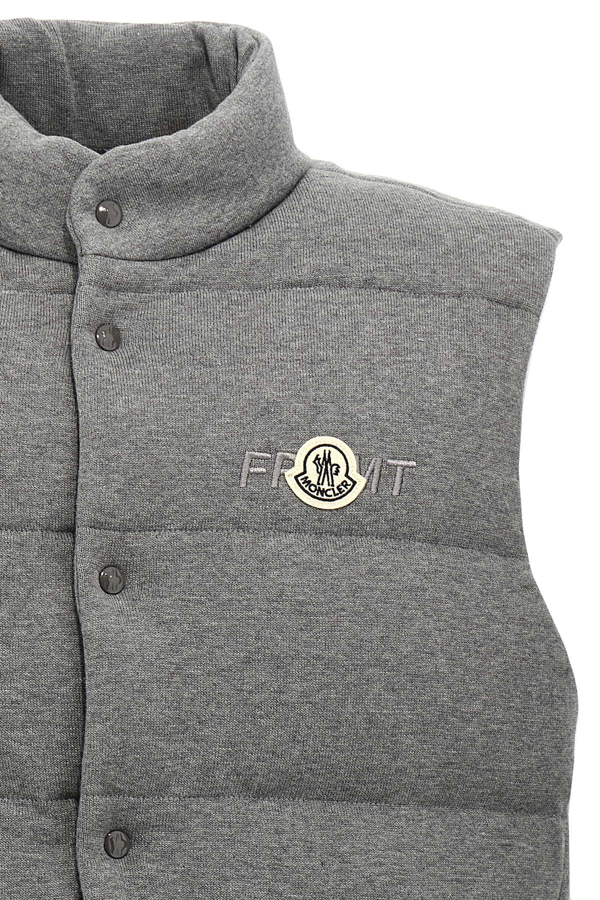 Moncler x FRGMT waistcoat in 14-gauge shaved cotton knit, down-padded nylon lining, embroidery and front felt logo patch, high neck, snap button closure, pockets.