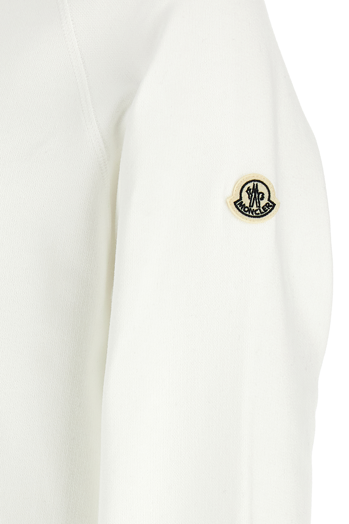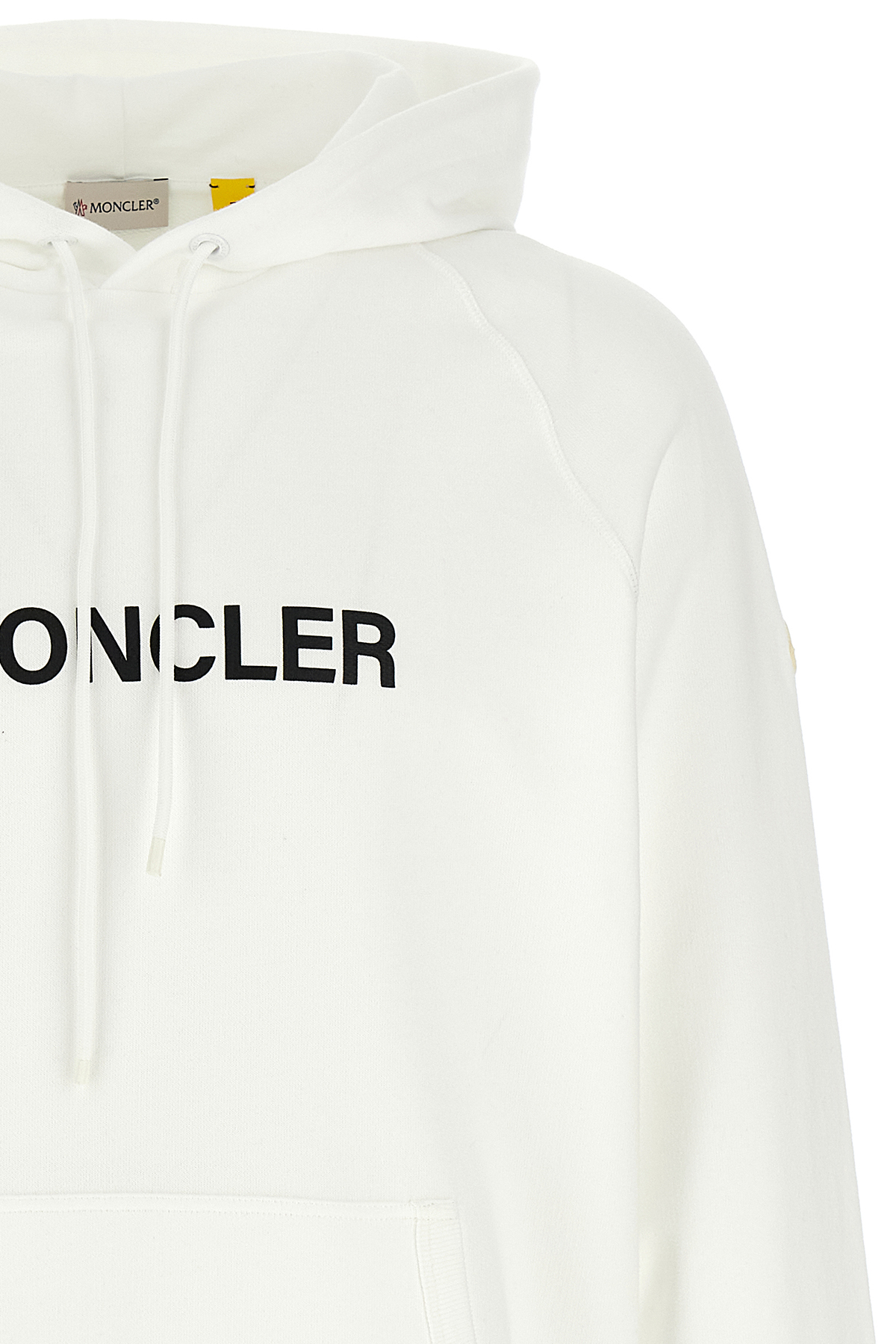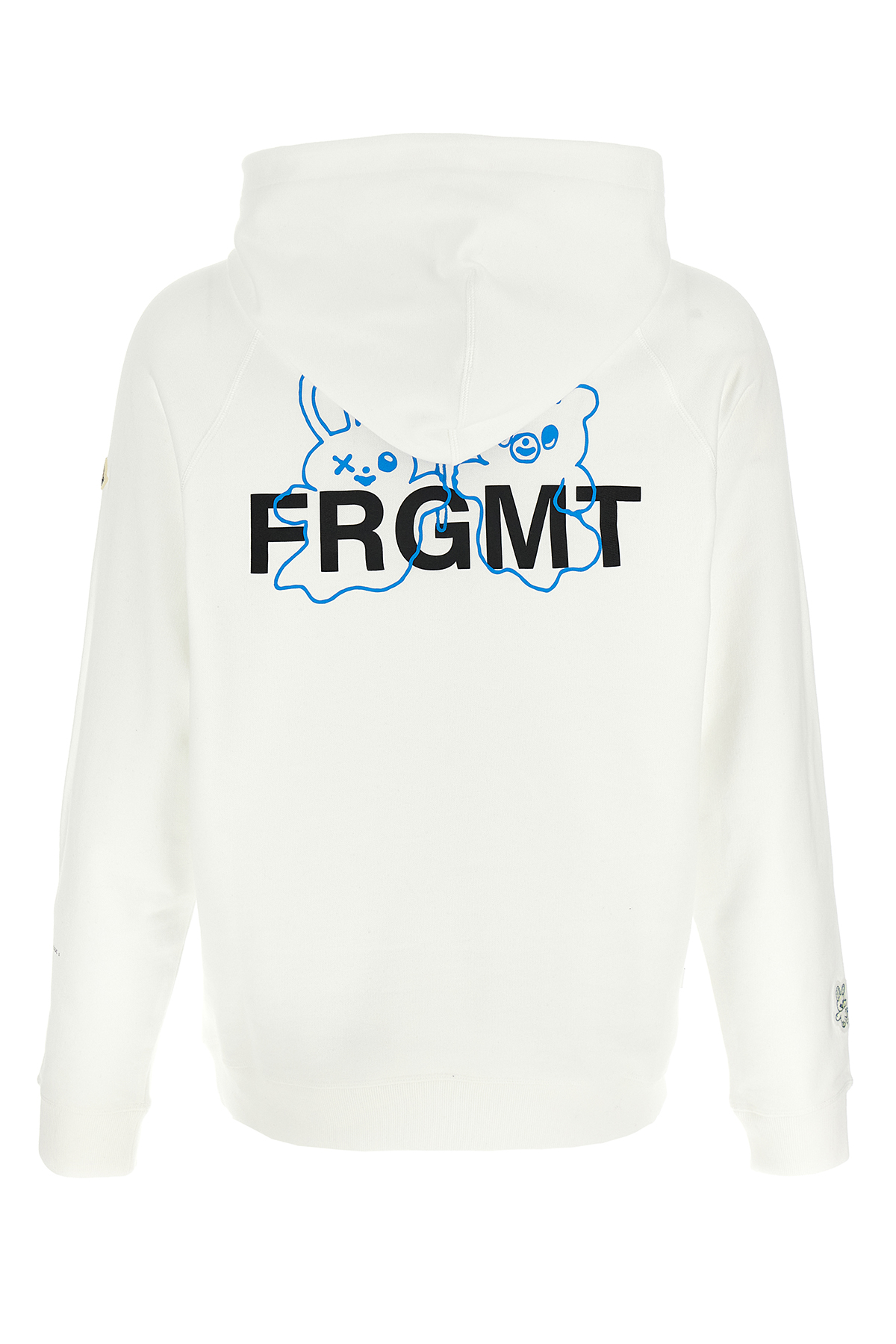 Moncler x FRGMT cotton jersey hoodie with front and back and sleeve print, felt logo patch on the sleeves, kangaroo pocket, long cuffed sleeves.