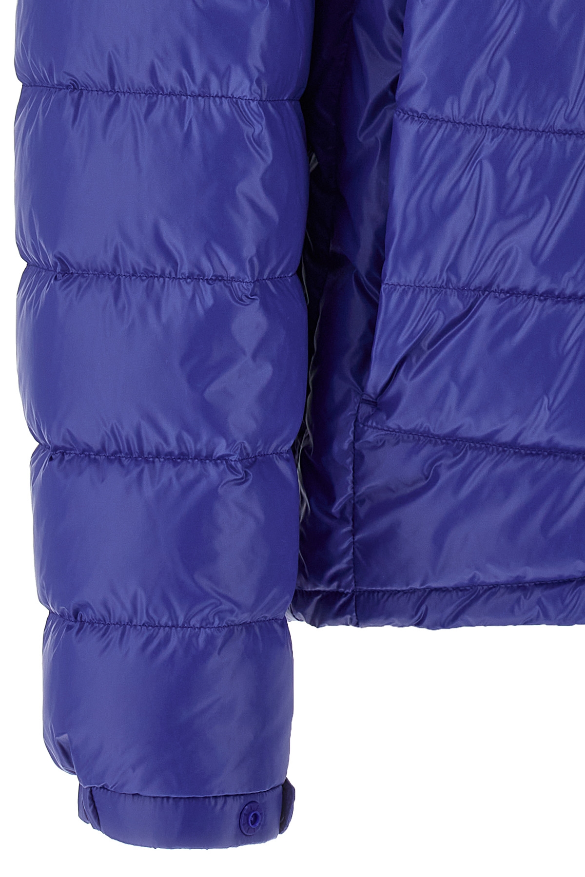 'Galeso' super laque nylon jacket slightly padded with feather, high neck with removable hood, zip closure, pockets, long sleeves with elastic cuffs and maxi contrasting felt logo patch, drawstring on the hem.