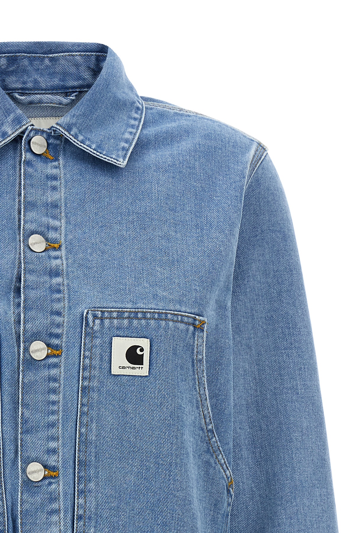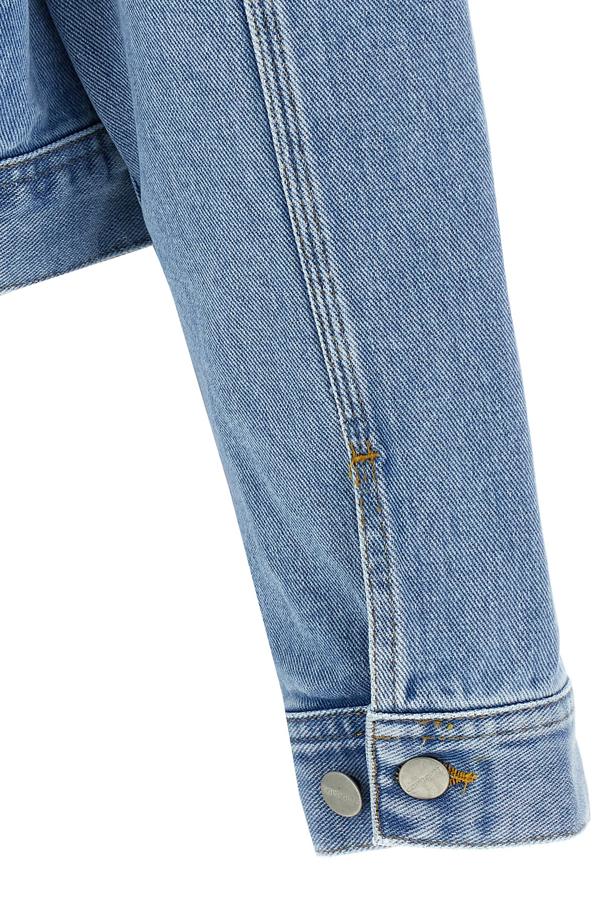 Maitland 'Arca' cropped denim jacket with button closure, front logo patch, trsches, long cuffed sleeves.