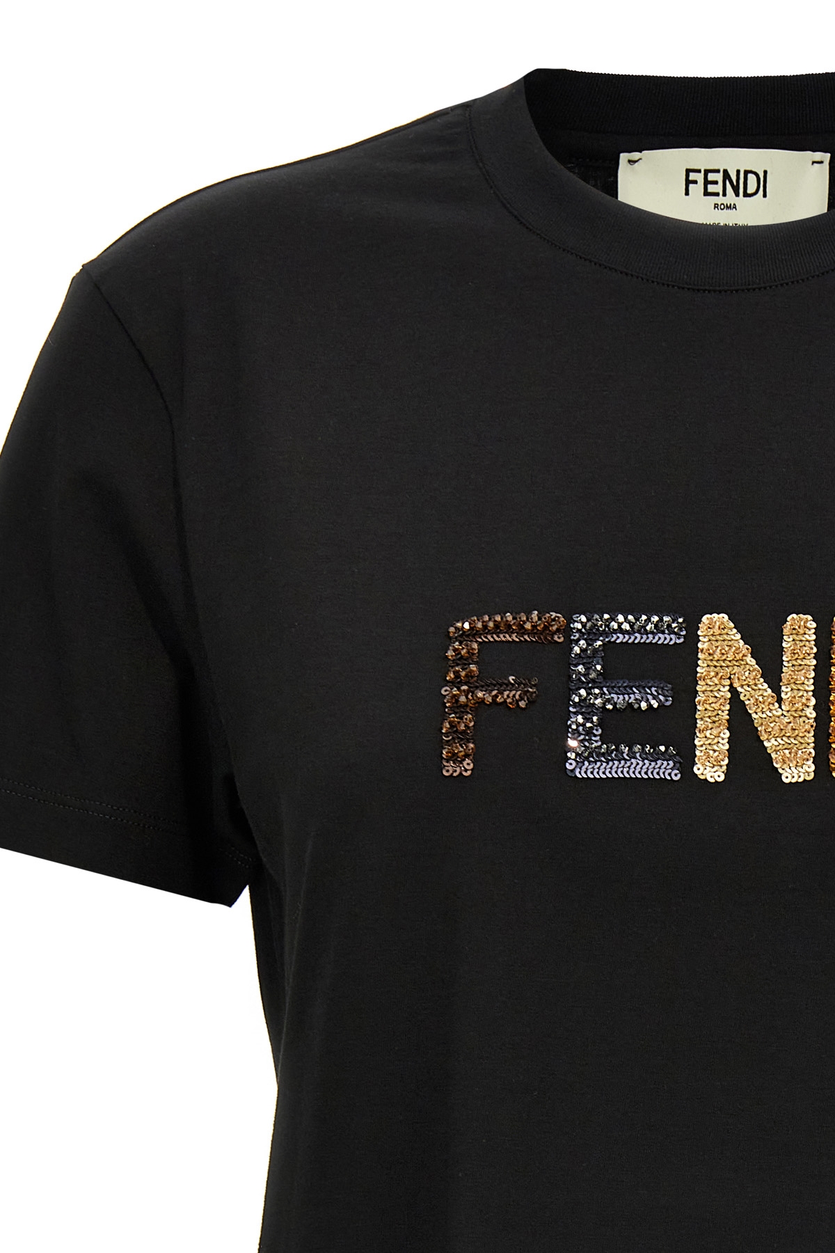 Cotton, crewneck T-shirt, with logo embroidery detail with beads, and short sleeves.