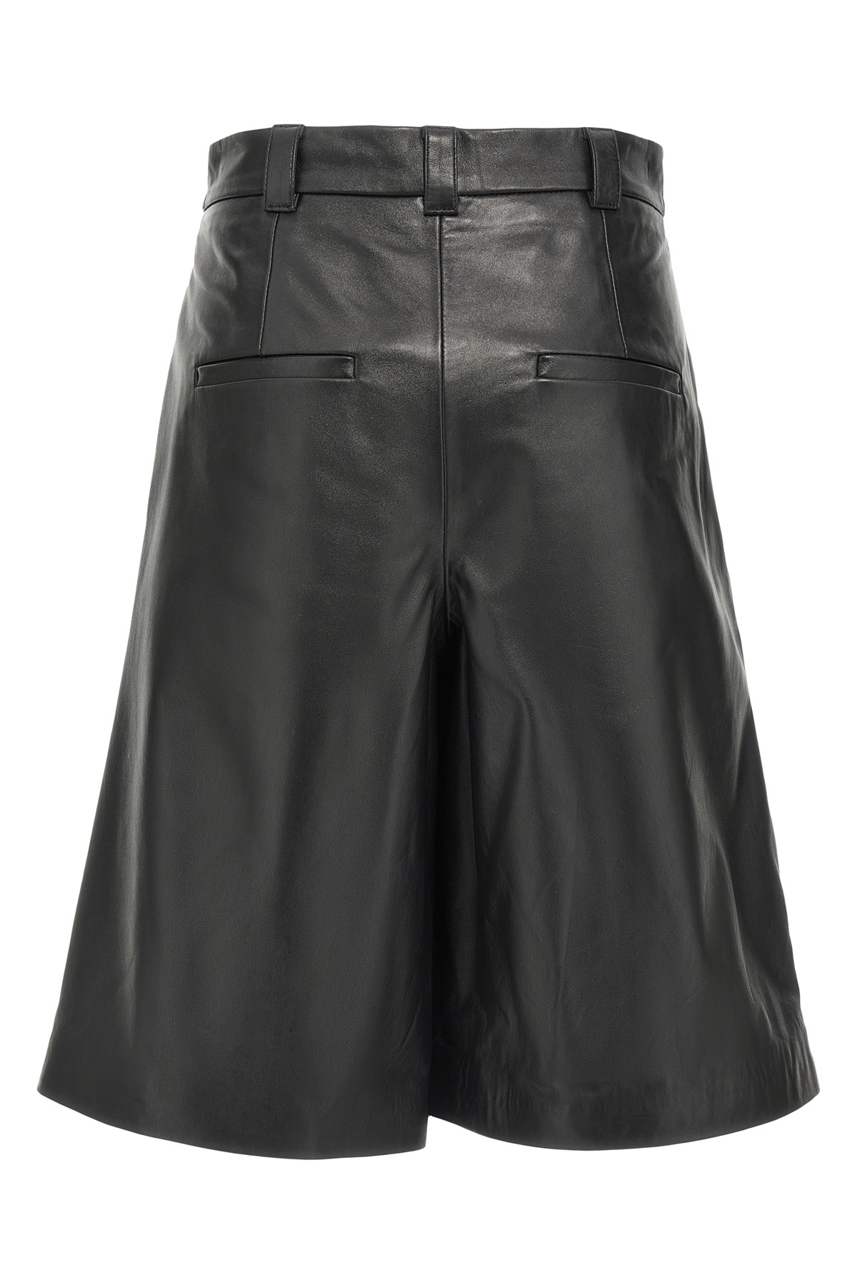 Emily Ratajkowski x Marella capsule leather bermuda shorts, low-waisted maxi model, with hook and button zip closure, pleats, pockets, front asymmetric panel to create a double crease.