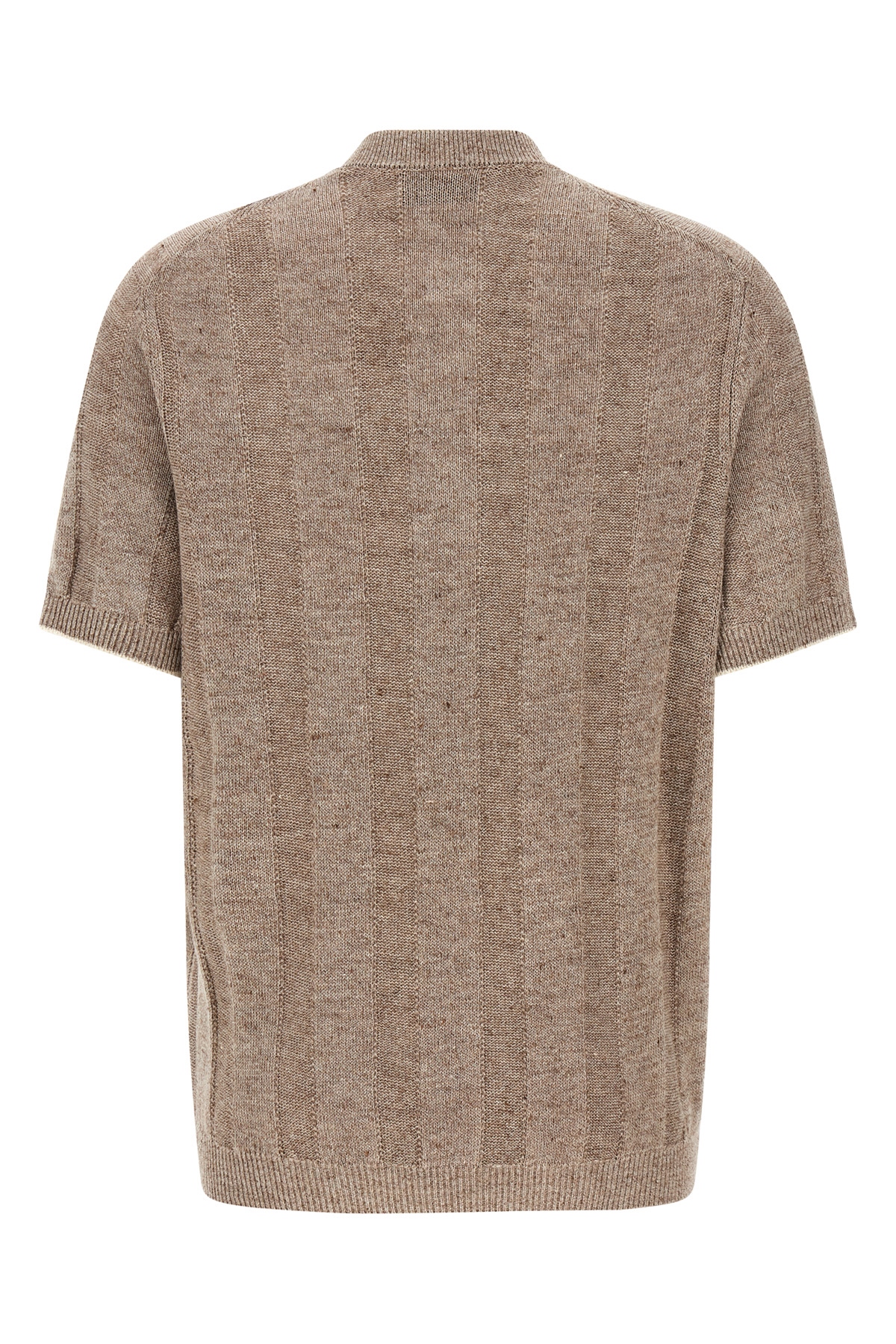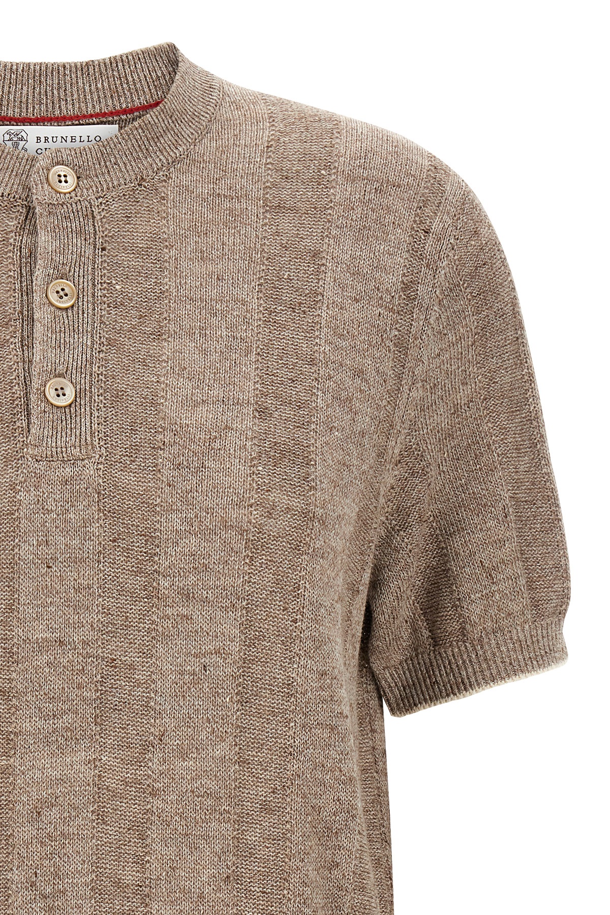 Linen and cotton blend sweater, seraph style, crew neck with button closure and half sleeves.