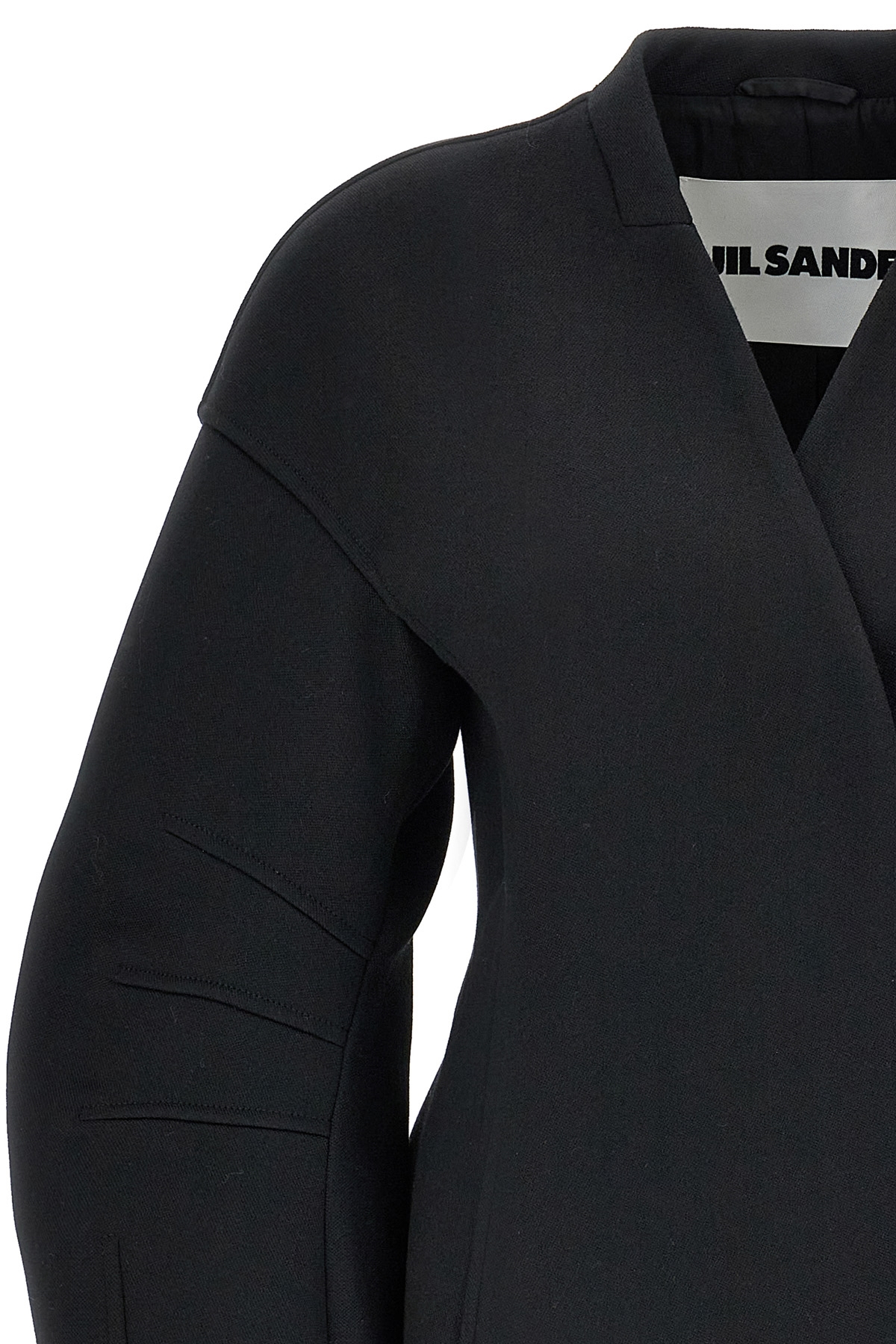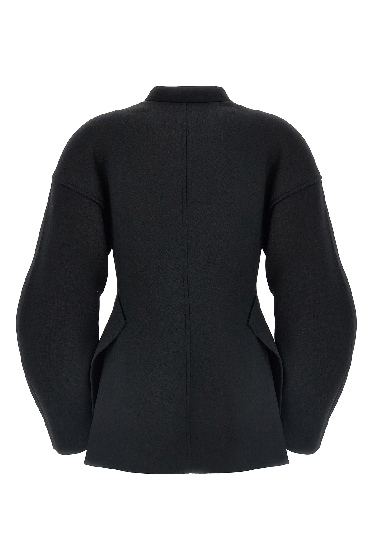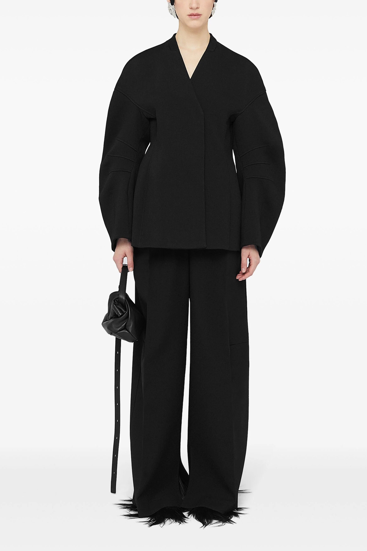 '53' wool blazer with lacing and snap button closure, long sleeves with pinces, side splits.