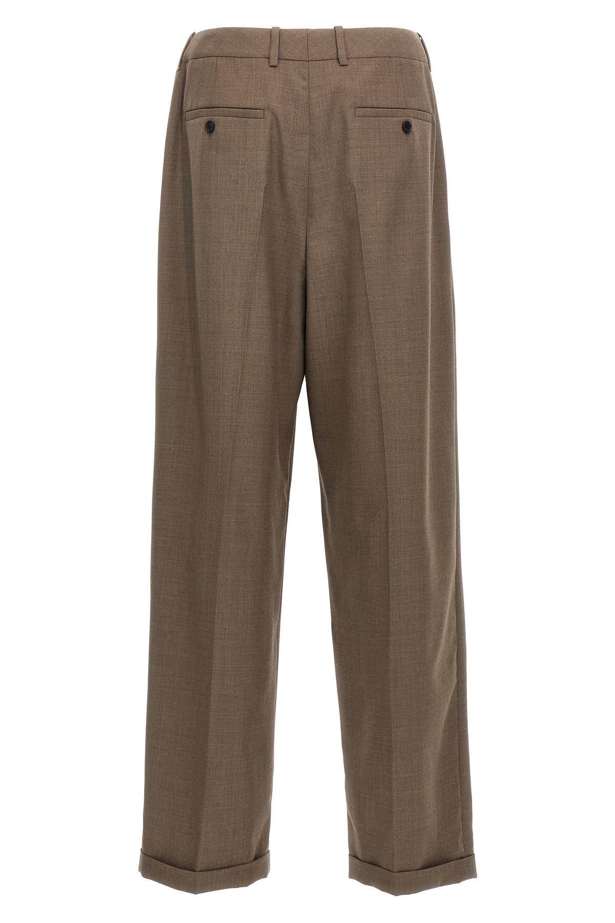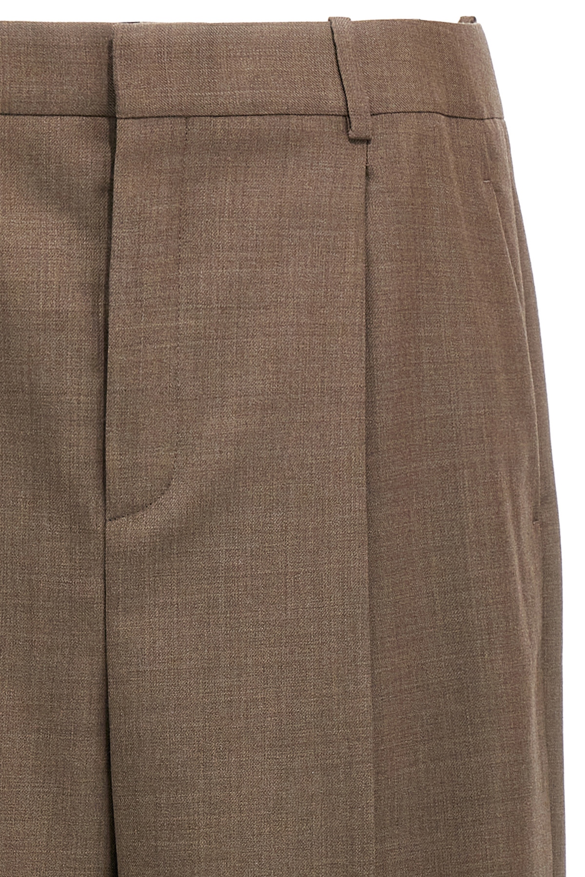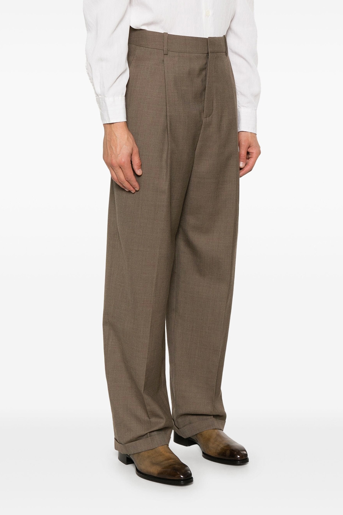 Tailored wool trousers, hook and button zip closure, ironed pleat and pleat, pockets.
