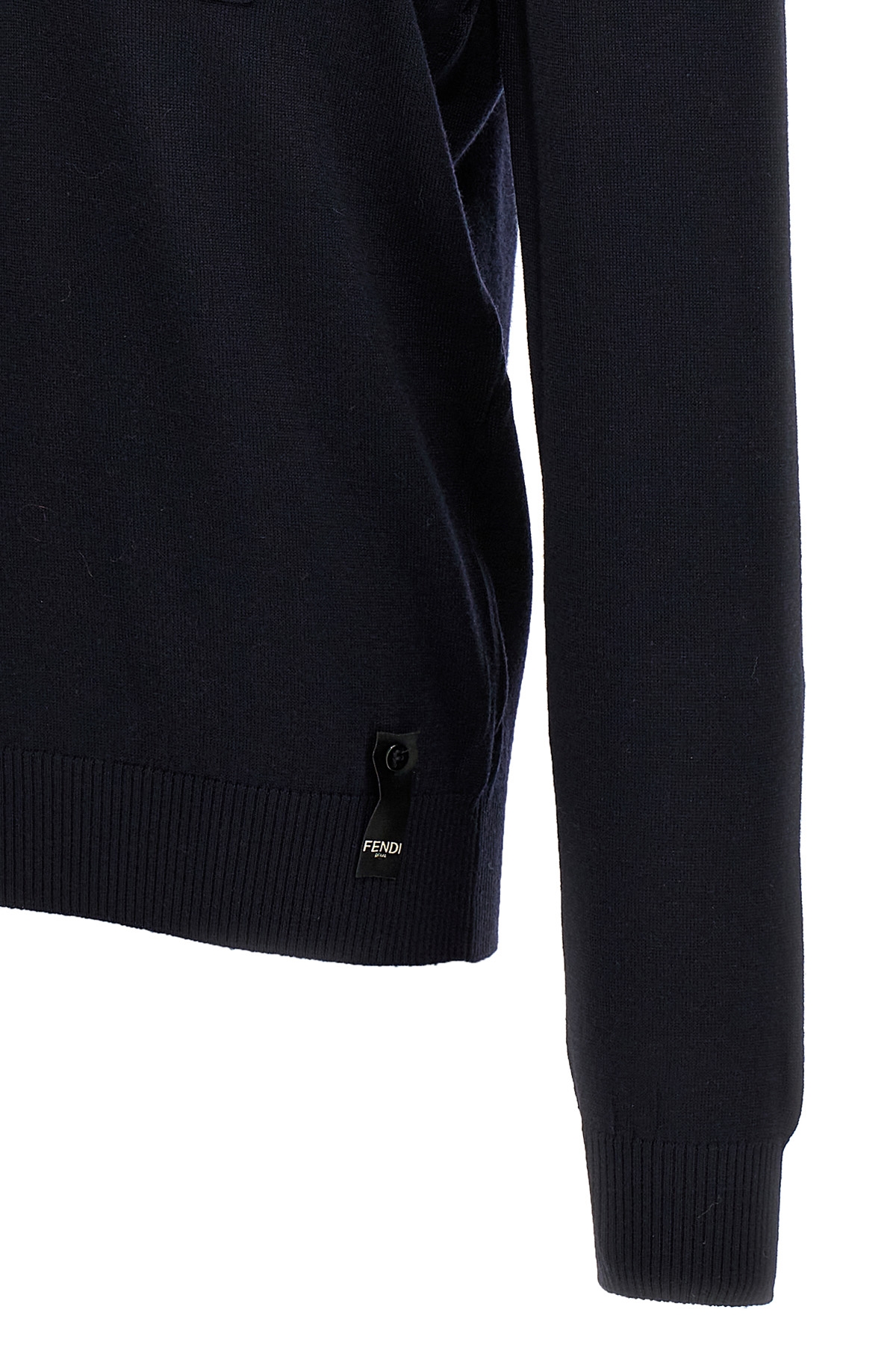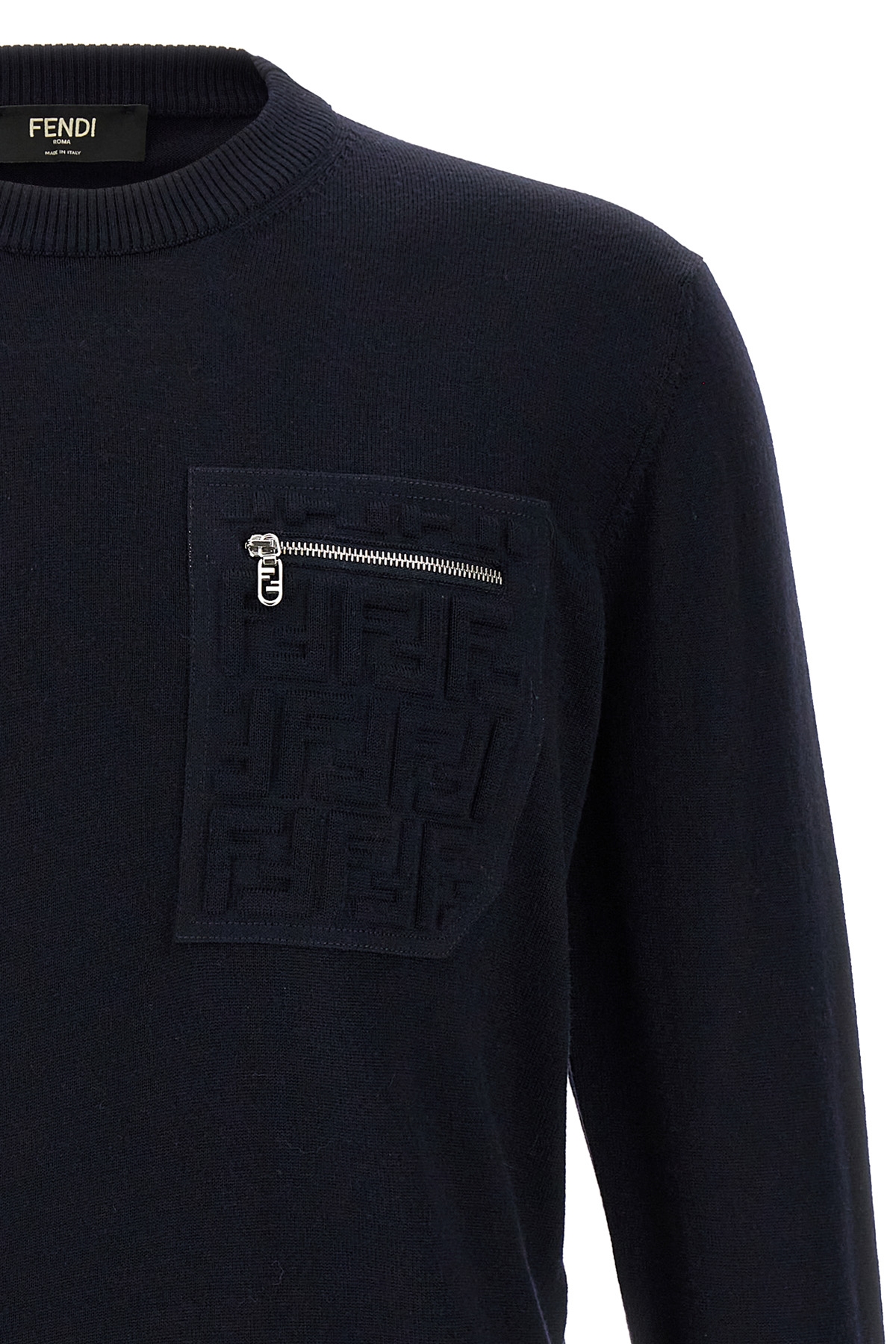 Wool sweater, pocket with embossed FF logo and zip closure, crew neck, long cuffed sleeves.