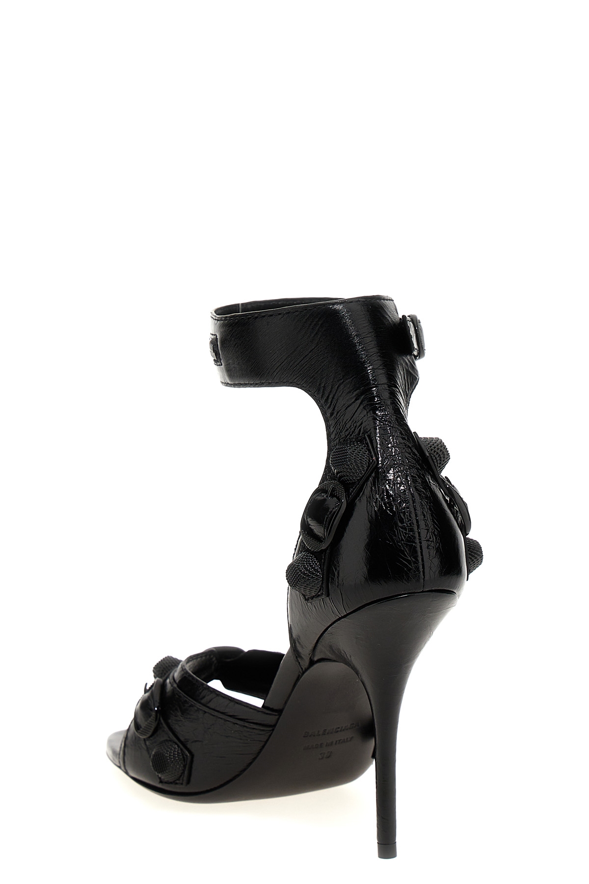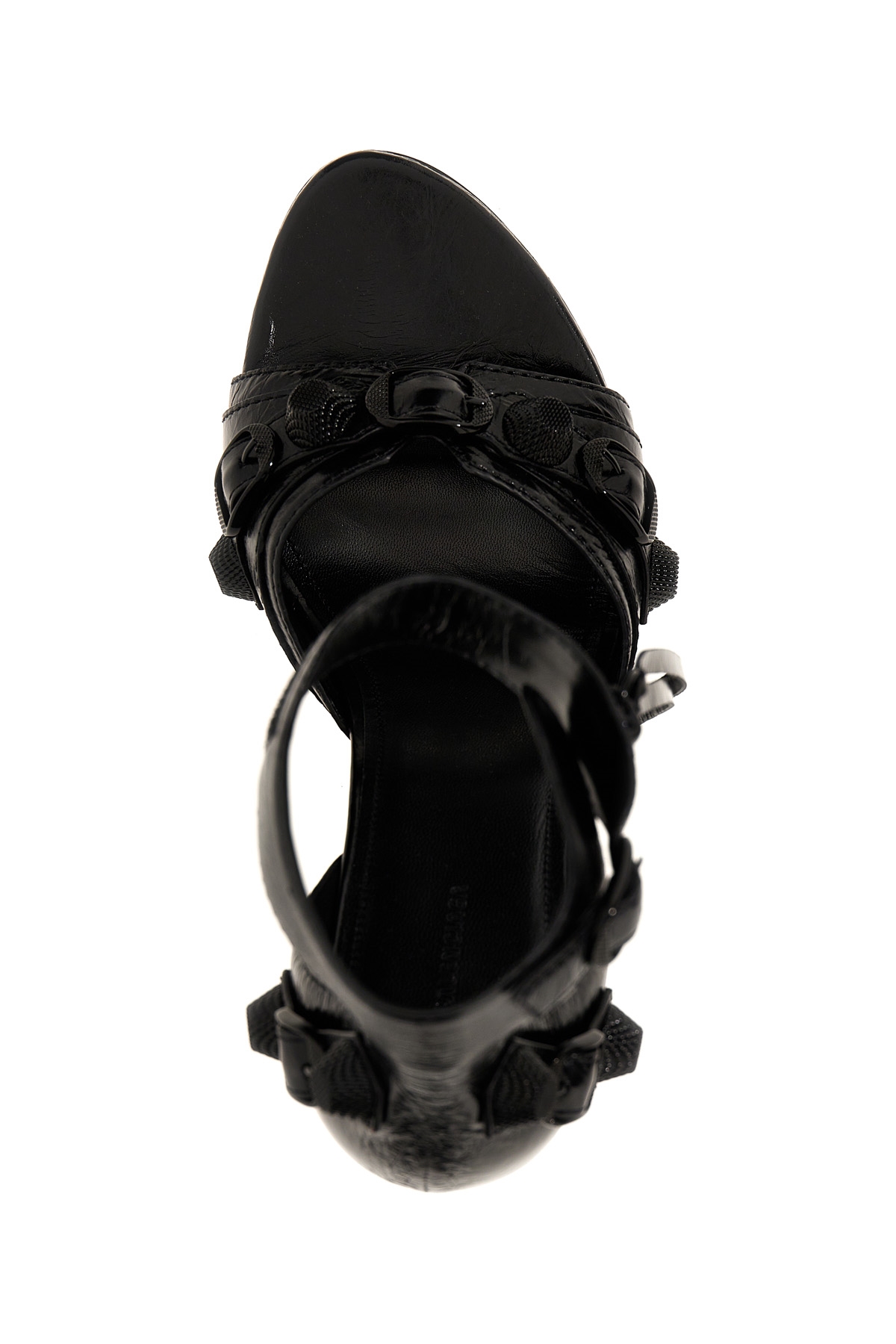 'Cagole' leather sandals with stud applique and metal details, ankle strap, heel.