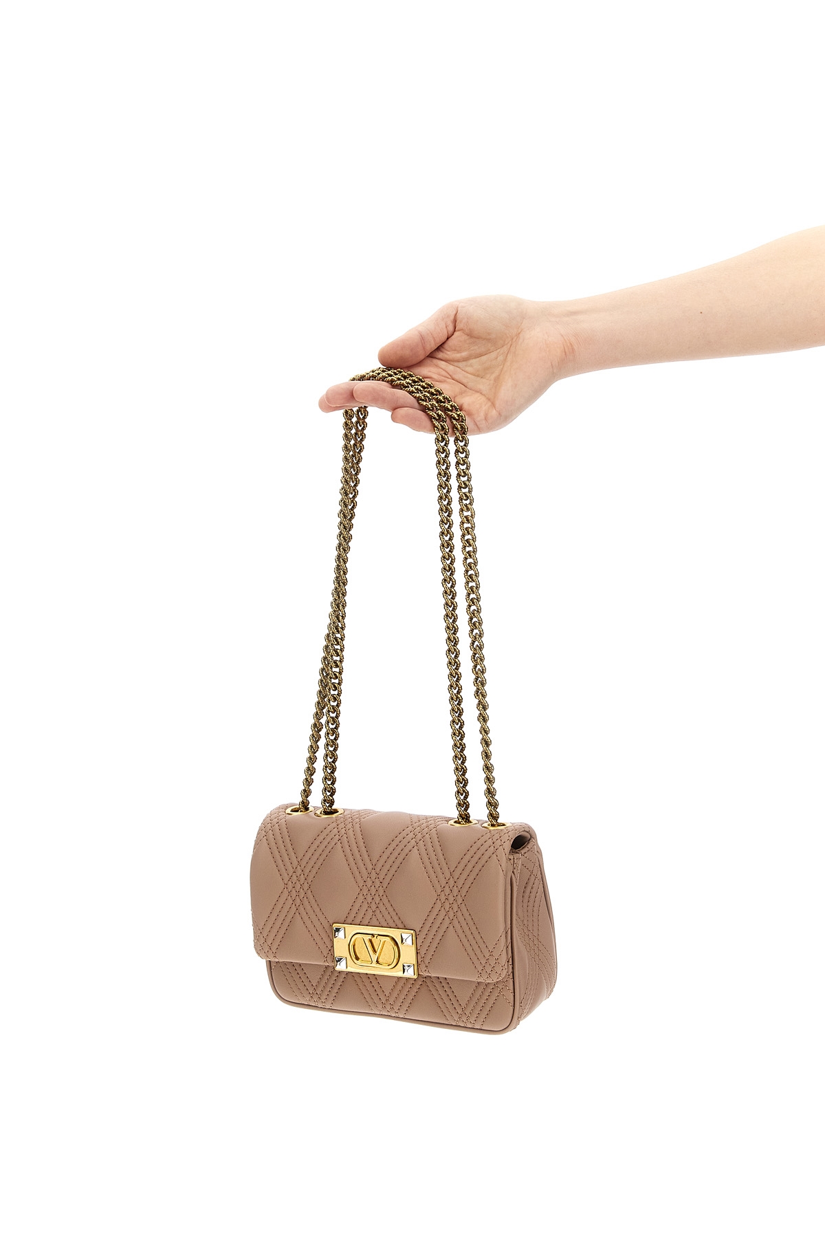 Small 'Quiltie 67' shoulder bag in quilted nappa leather, flap closure with metal 'VLogo Signature' detail with antiqued pressure finishes and studs, sliding chain shoulder strap.